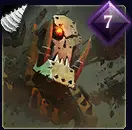 抓钩巨爪 戈尔古兹发射巨爪并跳向目标位置(或首个碰撞到的敌人)。造成100点破甲伤害(对普通护甲造成40点伤害),并嘲讽圆形范围内被命中的每个单位。 由于会与首个单位碰撞,每个单位受到的伤害通常较低。该技能往往无法命中圆形指示器内的每个单位。