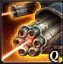 铁风暴导弹 索拉莉亚向独立目标位置发射最多六枚导弹。对范围内每个单位造成350点穿甲伤害。未发射的每枚导弹都会减少冷却时间。过热时,索拉莉亚的导弹会灼烧地面(必须进行持续伤害测试)。在范围内造成持续伤害和减速效果。 过热状态下,导弹造成550点穿甲伤害。