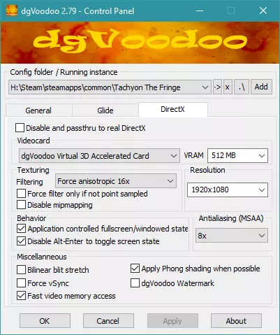 6. 进入dgVoodoo中的DirectX选项卡。按你的需求进行配置。