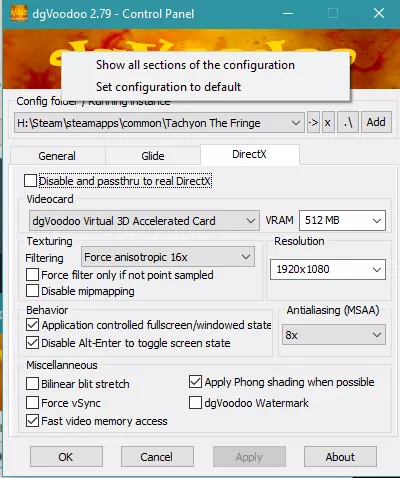 右键点击dgVoodoo横幅...点击“显示配置的所有部分”。