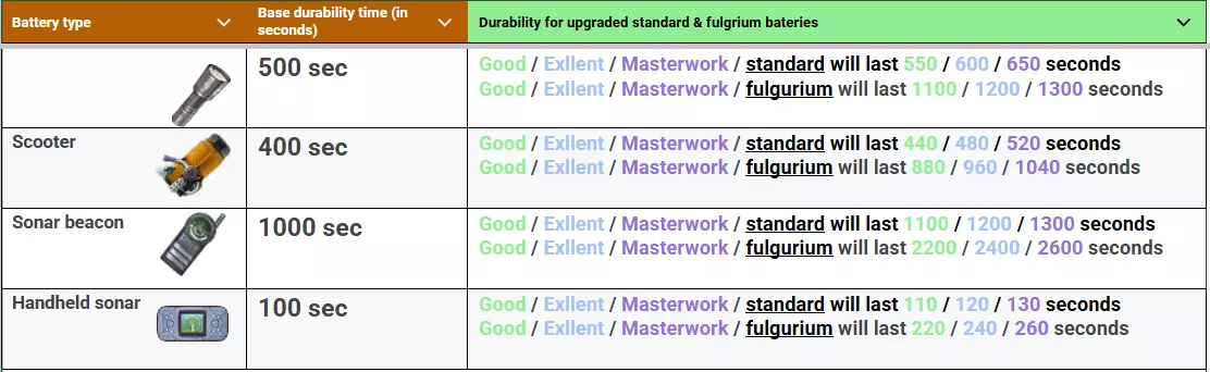 表5:使用不同质量电池的电子设备运行时间示例