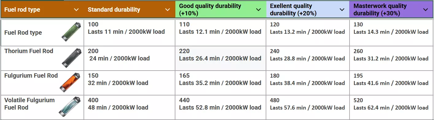 表2:2000kW反应堆负载下的燃料棒耐用性对比