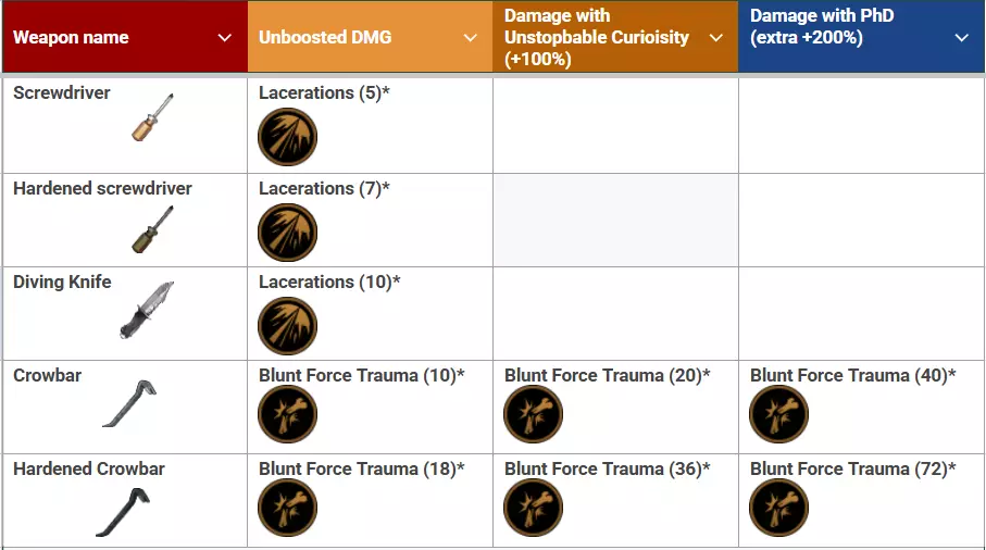 表7:配备2个天赋时撬棍的伤害比例