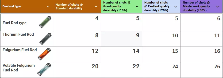 表4:裂变加速器弹药效率与燃料棒类型的关系