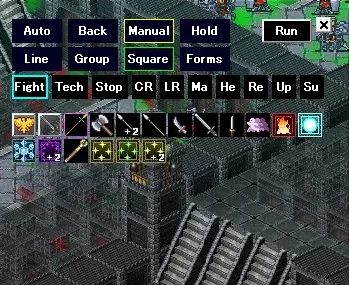 自动模式 - 移动和攻击均为自动进行。 撤退【后撤】 - 与敌人保持距离(自动执行) 手动模式 - 单位将等待指令后才移动。 固守【坚守】 - 当敌人进入射程时,单位不会移动。 撤退【奔逃】 - 单位会尝试逃离战场。 横队【横列】 - 并排排列。 密集阵型 - 单位在一处紧密聚集的阵型。 方阵 - 方形阵型 阵型 - 注册新阵型。 标准【战斗】 - 技能优先级设为标准。 特殊能力【技法】 - 与标准模式相同,但允许使用独特技法。 禁用 - 无法使用技能。在希望快速移动并与敌人拉开距离时使用。 剑 - 仅使用近战攻击技能。 弓 - 仅使用远程技能。恶魔 - 只会使用魔法技能。 治疗 - 只会使用生命值恢复技能。 恢复 - 只会使用状态恢复技能。 强化 - 只会使用属性增强技能。 召唤 - 只会使用召唤技能。 左键点击 - 仅使用选中的技能。 右键点击 - 禁用选中的技能。