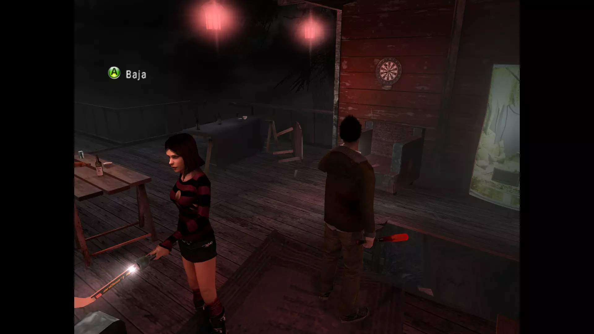 全副武装 获取游戏中所有可用武器。 1. 曲棍球棍:在门外靠在门上 | 兄弟会(肯尼和艾米) 2. 高尔夫球杆:从窗户进入后靠在架子上 | 兄弟会(肯尼和艾米) 3. 手枪:在游戏室和迷你吧的保险箱里 | 兄弟会 | 密码:1873(肯尼和艾米) 4. 眩晕枪: | 兄弟会 | 宝箱1(肯尼和艾米) 5. 球棒: | 必拿。 | 森林(科里和梅) 6. 链锯: | 汽车坠落的地方,你会看到一个供电的电线杆,沿着那条死胡同小路走,就在那里 | 森林(科里和梅) 7. 霰弹枪: | 必拿。 | 森林(科里和梅) 8. 带刺木棍: | 不知道是不是和什么有关,不过我去晚了没能帮到君。再往前走一点,我发现他靠在一个漆黑房间的管道上 | 兄弟会(斯文和梅) 9.- 十字弓:| 医院 | 宝箱2 10.- 炸药:| 在医院实验室第二部分进行混合时(斯文和梅) 11.- 闪光球:| 医院第二部分 宝箱3 12.- 信号弹:| 刚进入工厂时(科里和香农) 13.- 信号弹:| 在工厂里,斯文推着几个沉重箱子的地方,在储物柜处(斯文和科里) 14.- 信号枪:| 工厂 宝箱4(斯文和科里) 15.- 信号弹:| 通往龟岛杰迪戴亚家的路上(科里和香农) 16.- 信号弹:| 杰迪戴亚家 | 上层走廊“遭遇”事件旁边 17.- 巨型信号弹:| “遭遇”事件发生地 | 杰迪戴亚家 宝箱5 18.- 孟加拉刀:与斯坦一起使用撬棍,在学校内的一些储物柜里,工业机器利夫摩尔(斯坦和科里)处 19.- 微型冲锋枪:利夫摩尔6号宝箱(斯坦和香农) 20.- 影片:7号宝箱 重返兄弟会 21.- 背包:在最终 boss 战前的地面上 重返兄弟会 可错过成就