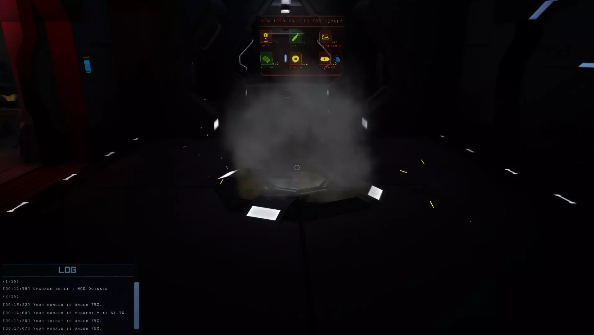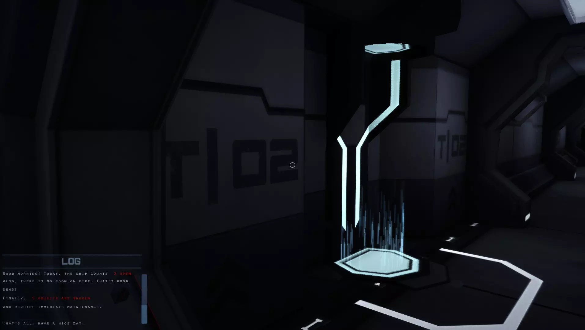 使用红灯来引导你。它们通常会告诉你损坏的部件所在的房间,这相当于一个损坏的传送器。这通常只在最初几天有用,因为如果其他东西损坏了,红灯会指引你到不同的损坏部件处。 现在使用这些传送器/“电梯”前往其他楼层,修复其余的主传送器。