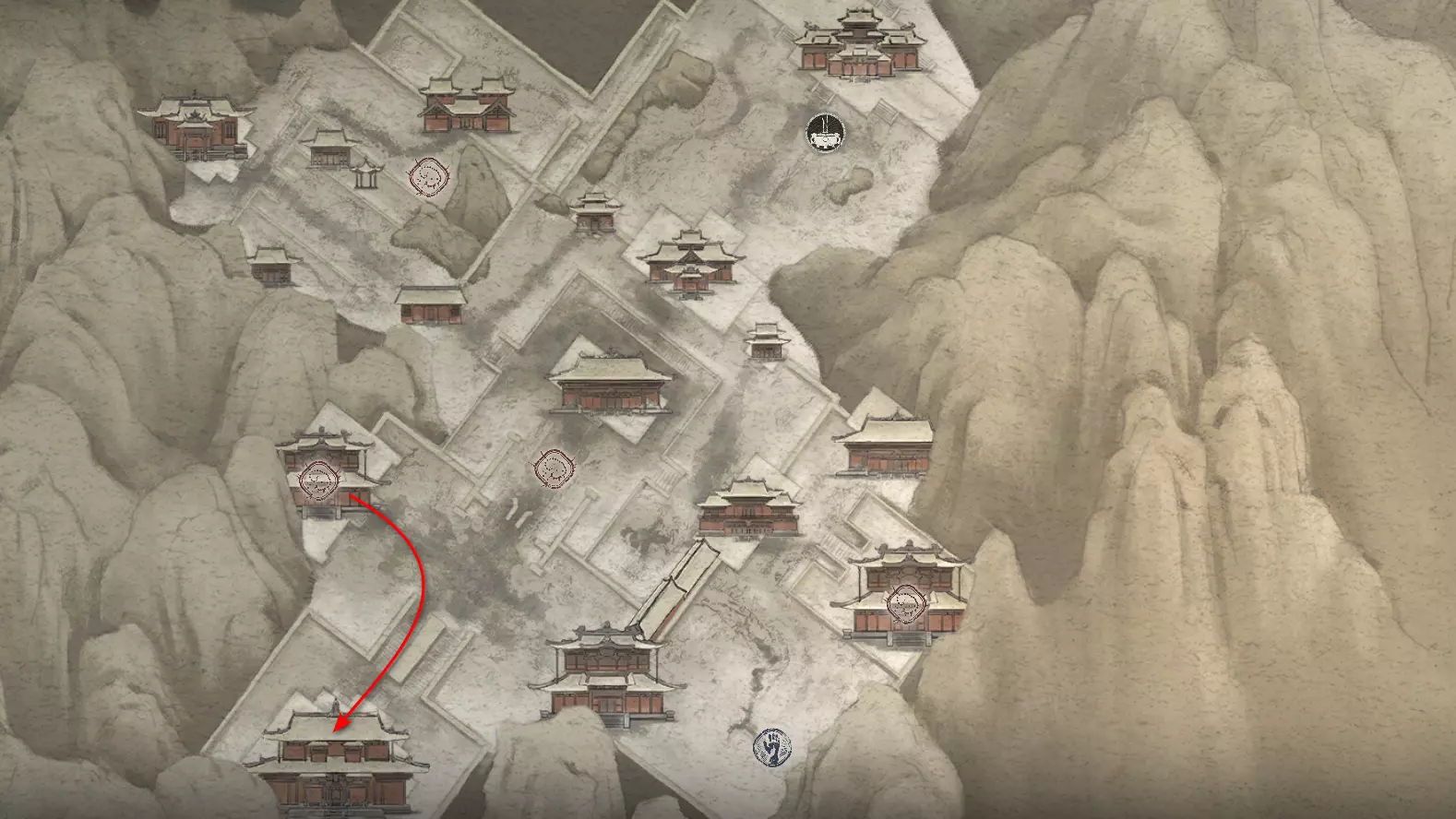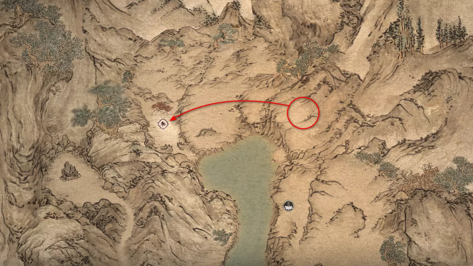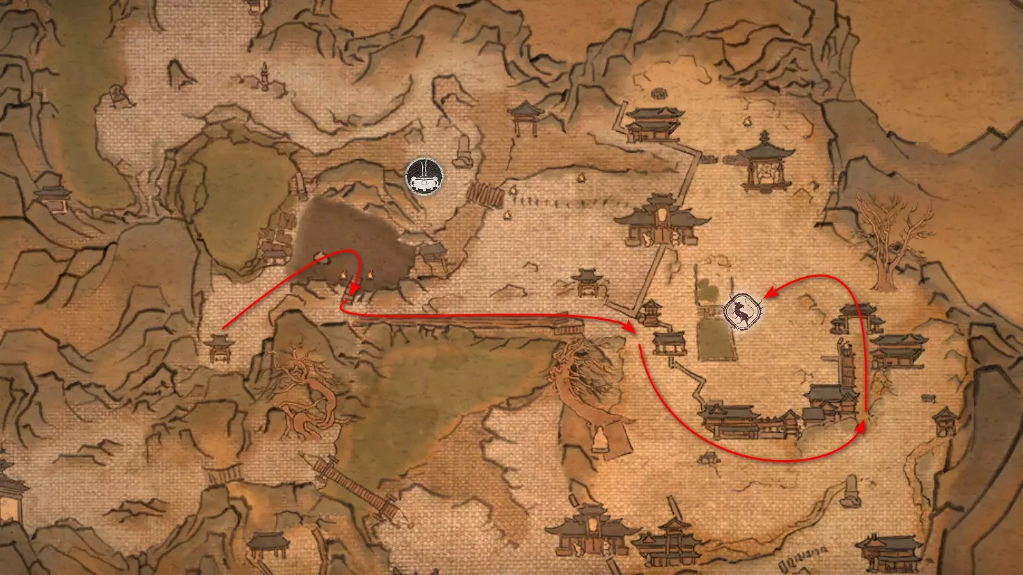 前往【入殿】祭坛。从祭坛向上攀登。在进入竞技场前,向右转。会第二次遇到野猪。需要将【玉莲花】交给它,该物品是在整章中以植物形式收集的。