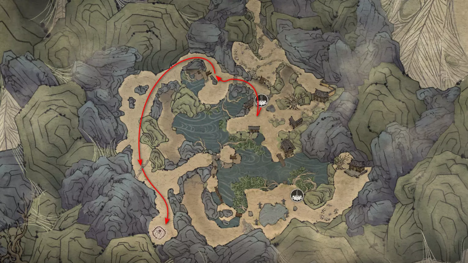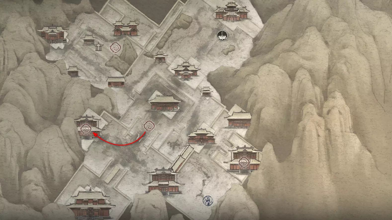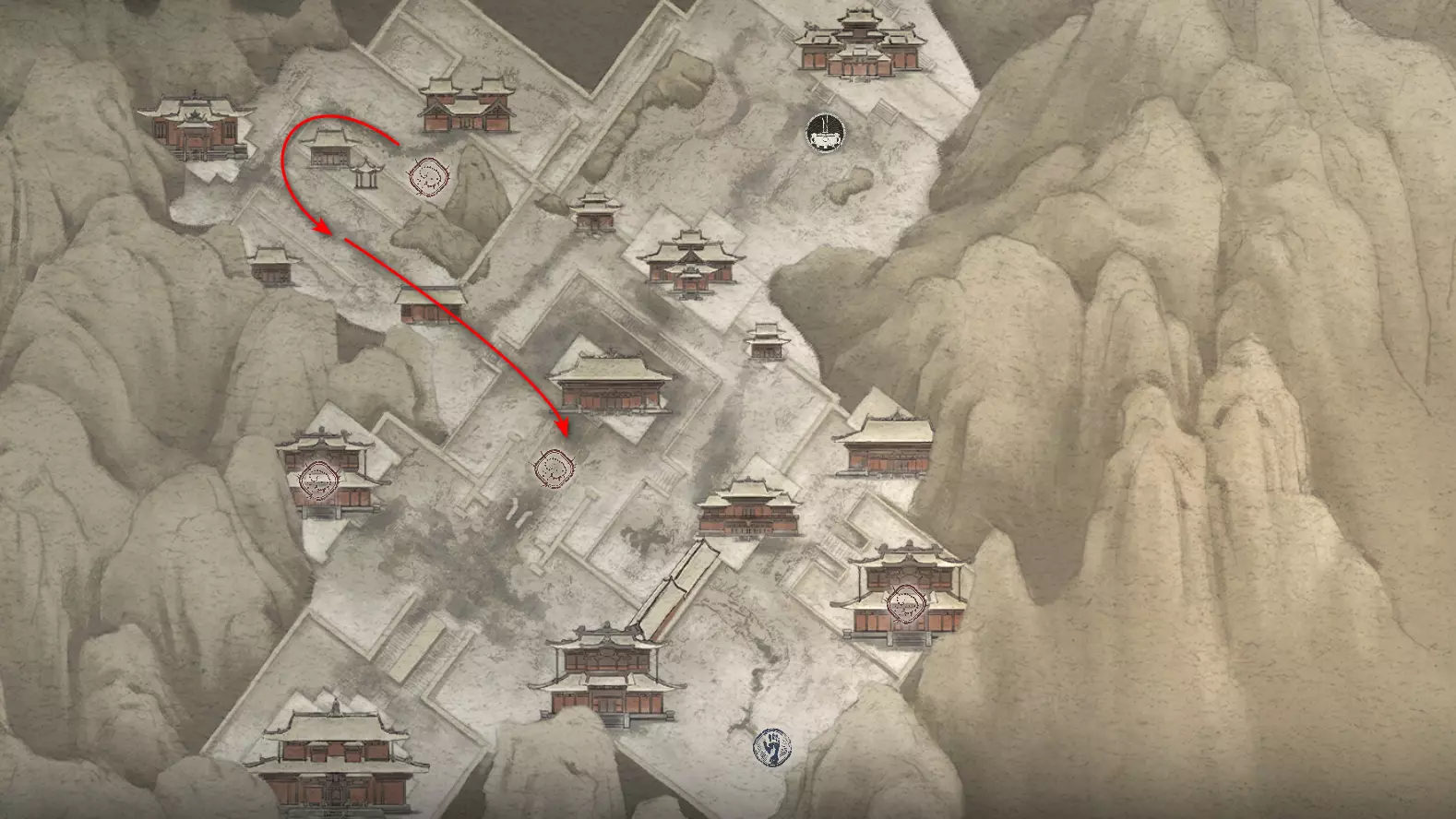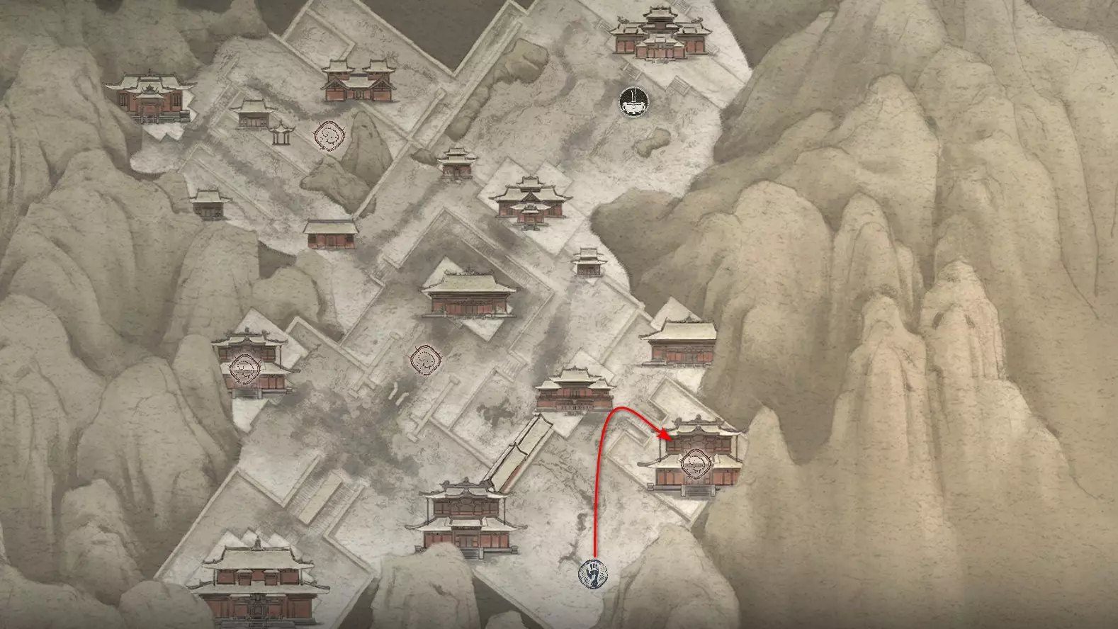 前往【入殿】祭坛。从祭坛向上攀登。在进入竞技场前,向右转。会第二次遇到野猪。需要将【玉莲花】交给它,该物品是在整章中以植物形式收集的。