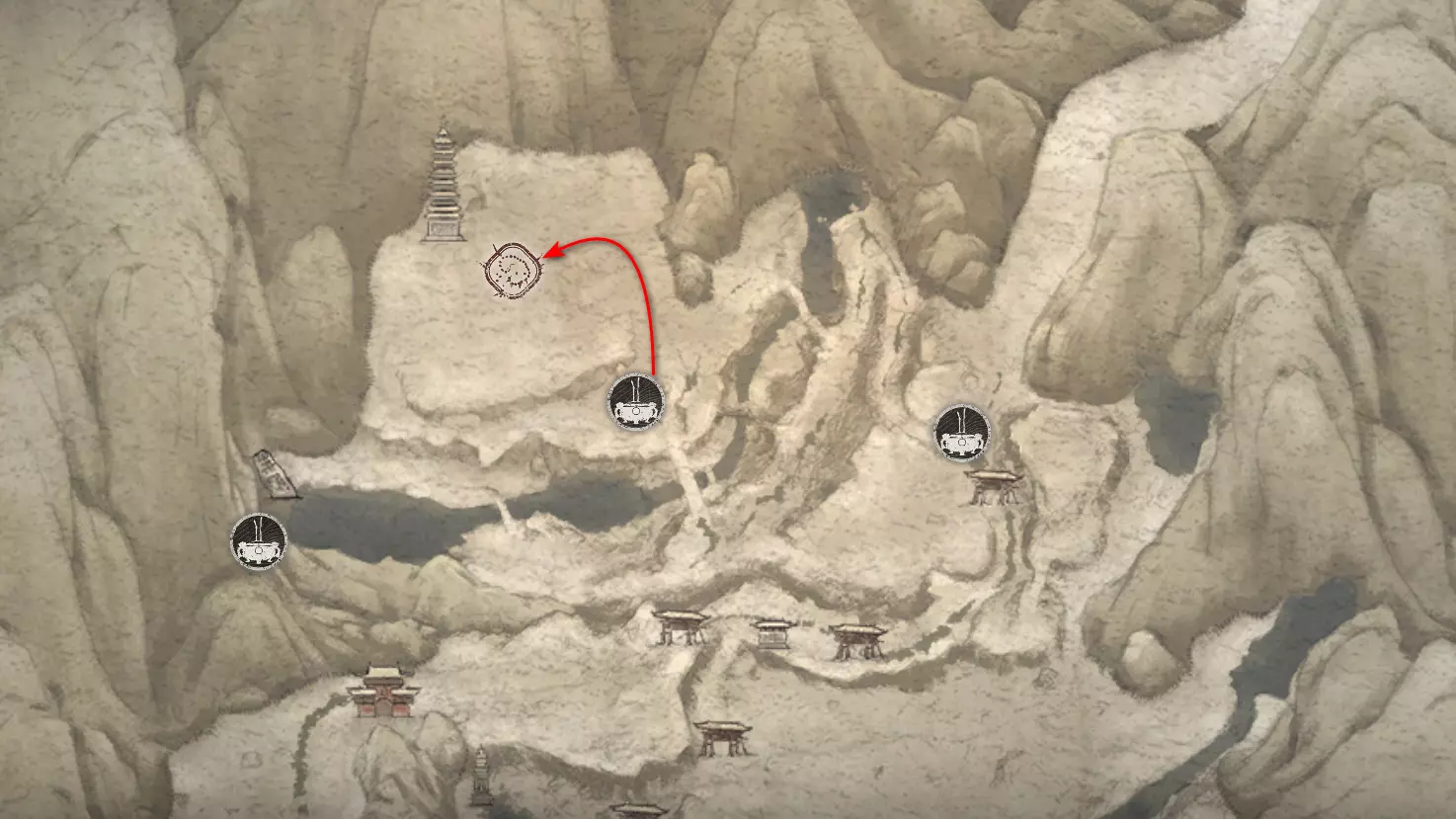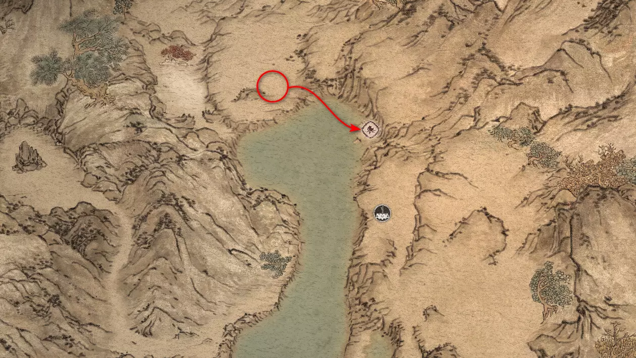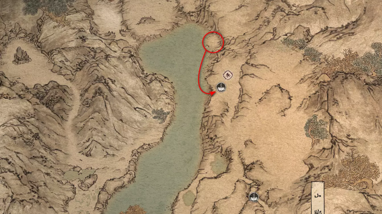 继续直行。左侧会有一个不深的峡谷,但我们稍后再回到这里。走过峡谷上方的石桥,然后向上攀爬。在那里可以找到【佛眼】[4/6]。