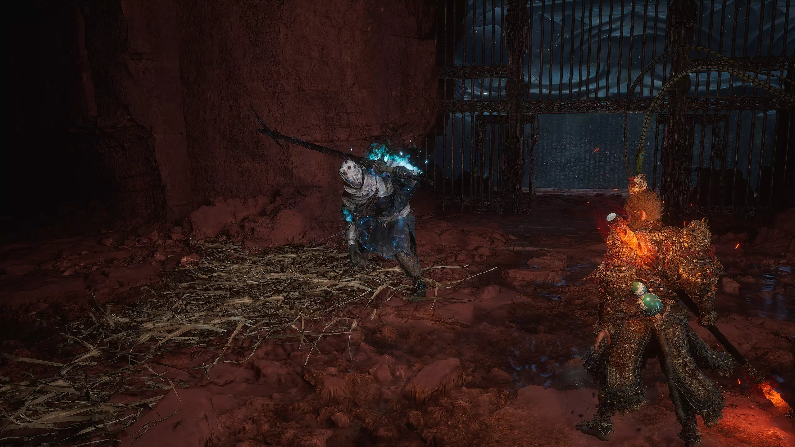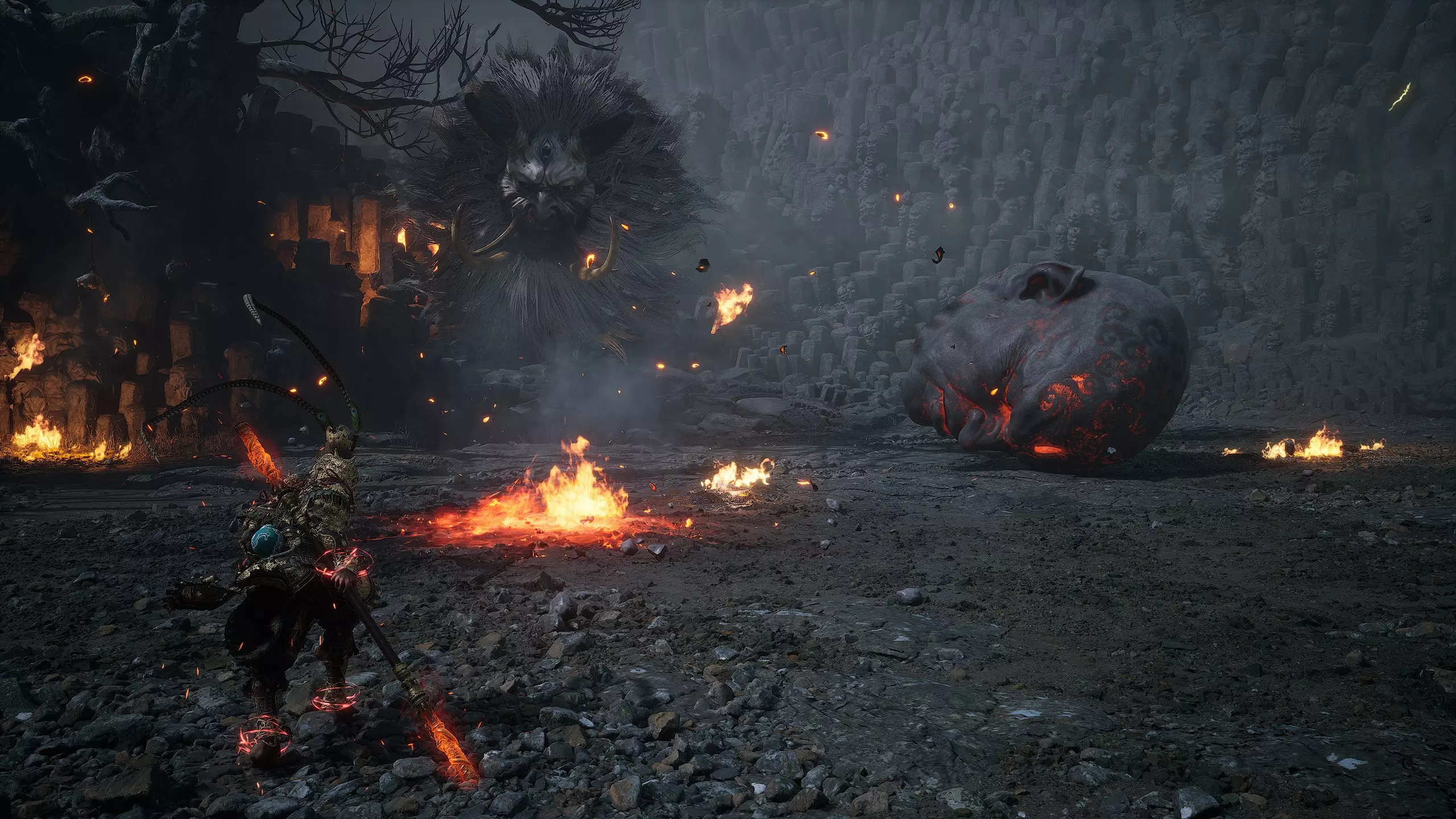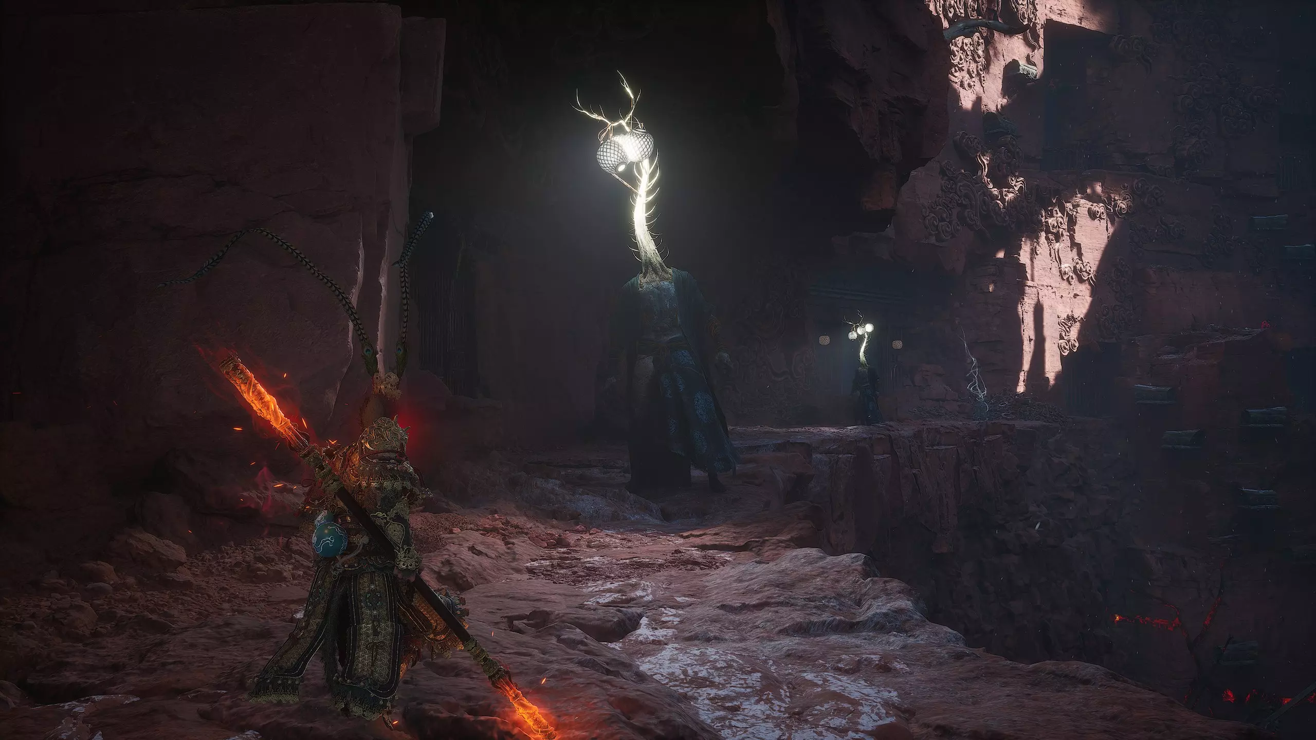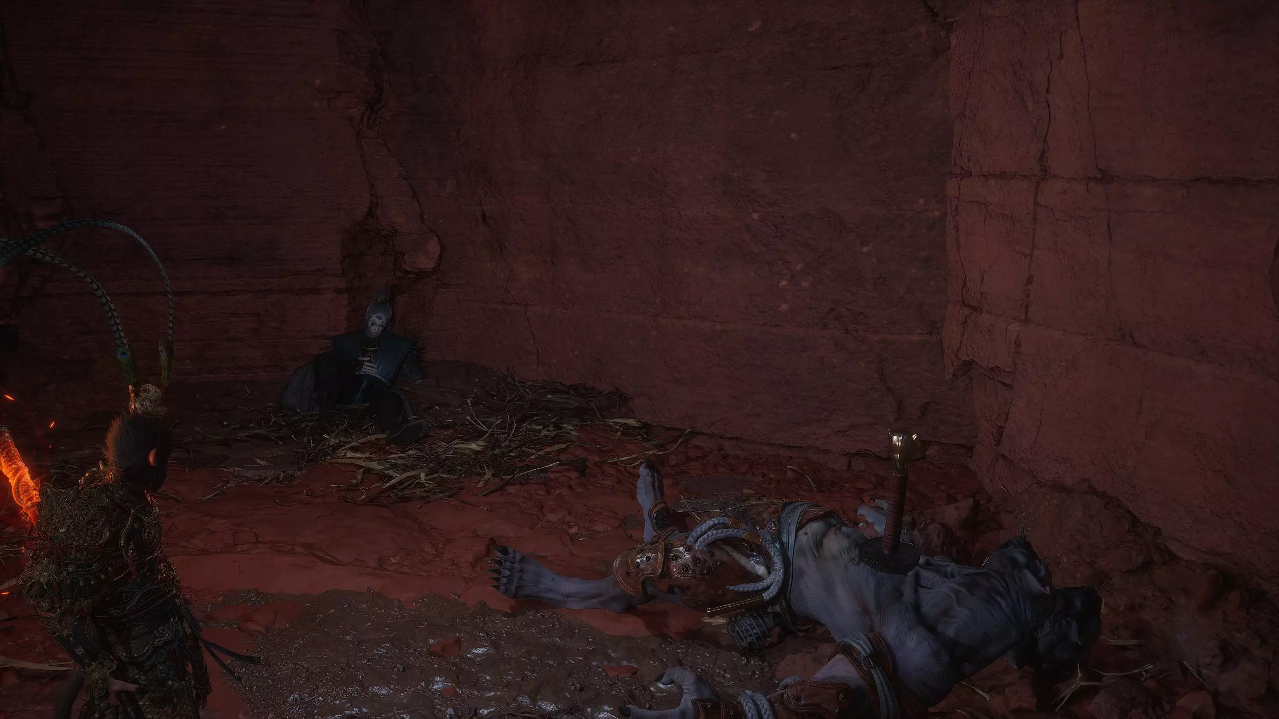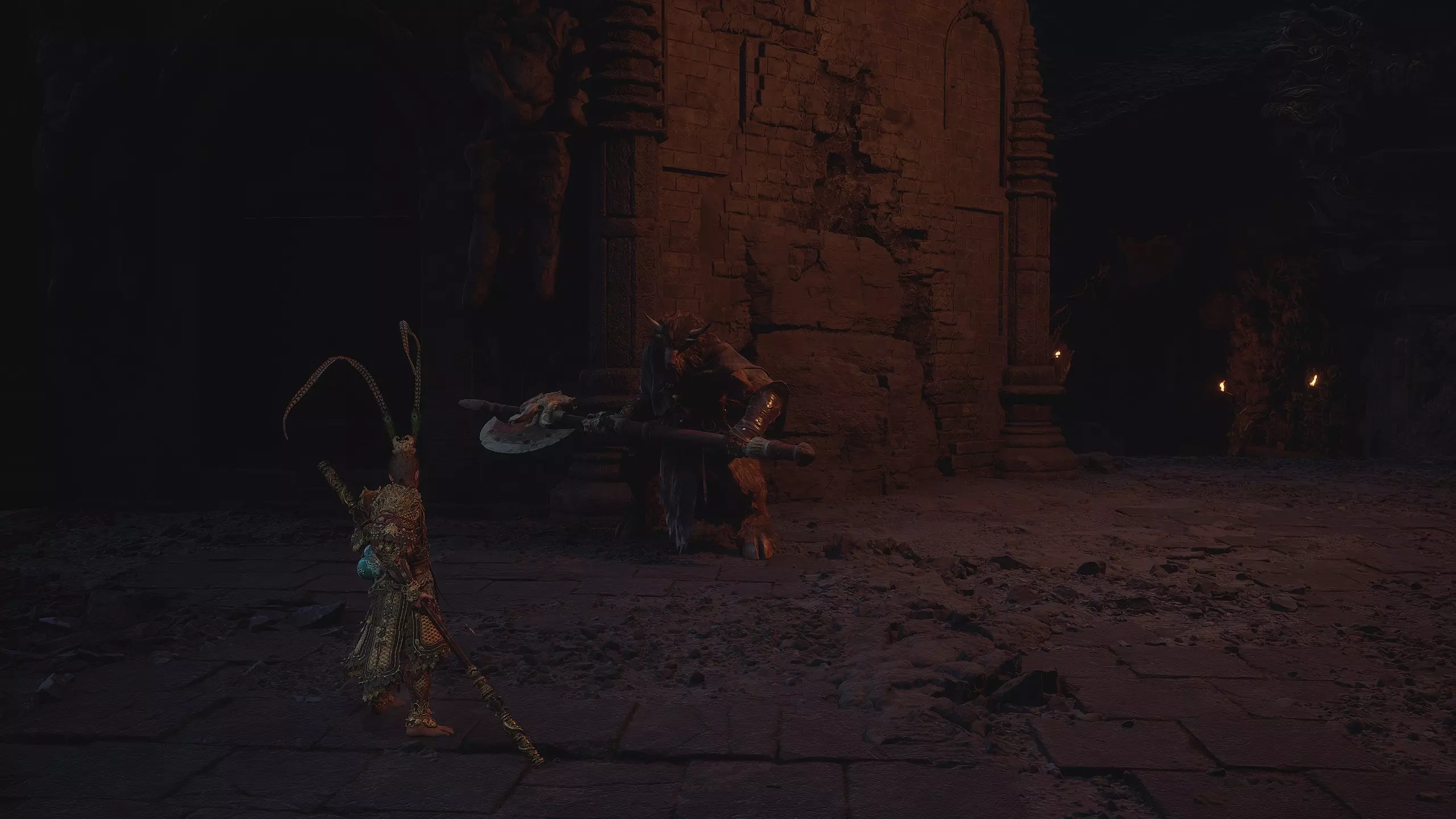 获胜后将获得: 【妖王之魂】[47/54] - "石猴王" 武器制作材料【三昧火晶】[1/3] 再次回到起点并径直向前跑。穿过大门后,留意左侧的小路。那里有一个强大的敌人。击败他后将获得【妖王之魂】[48/54] - "土行罗刹"