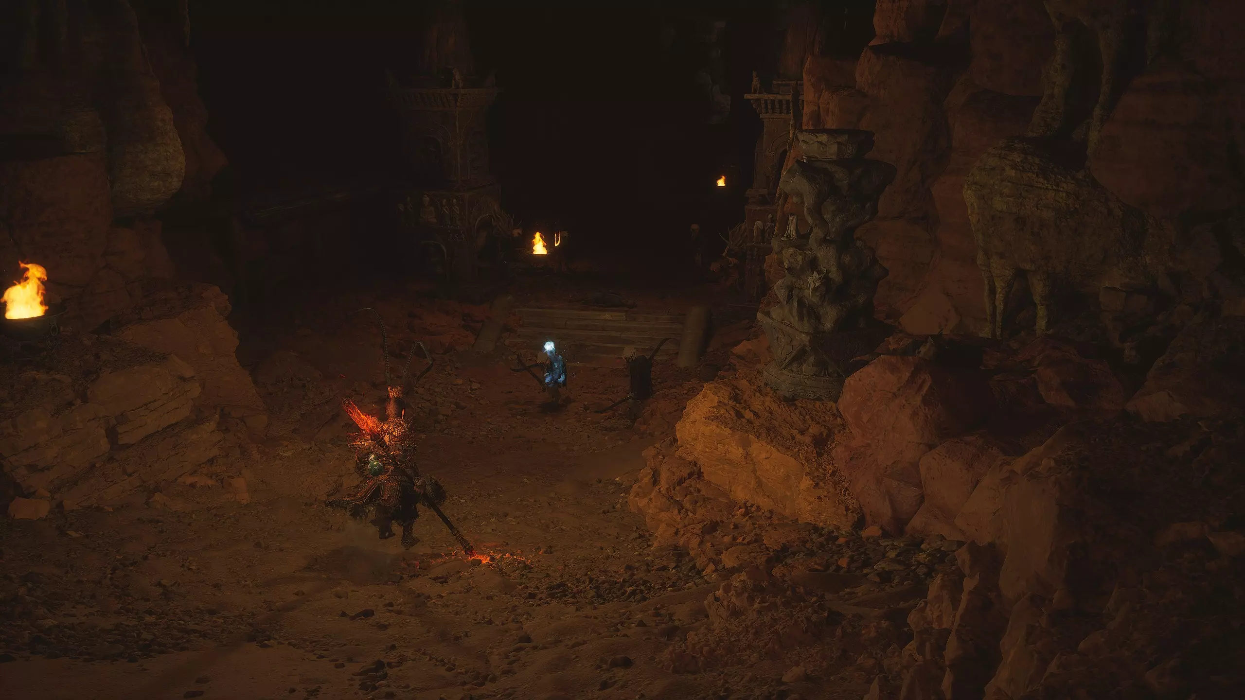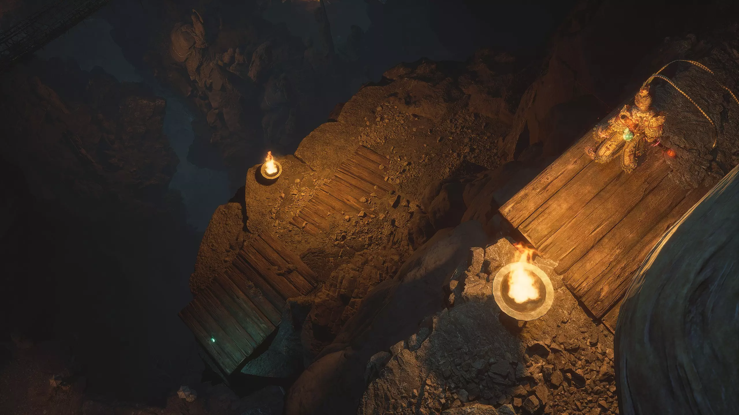 回到【绝望山谷】祭坛,借助旁边的雕像打开石门。沿着台阶向下走,然后向右转。