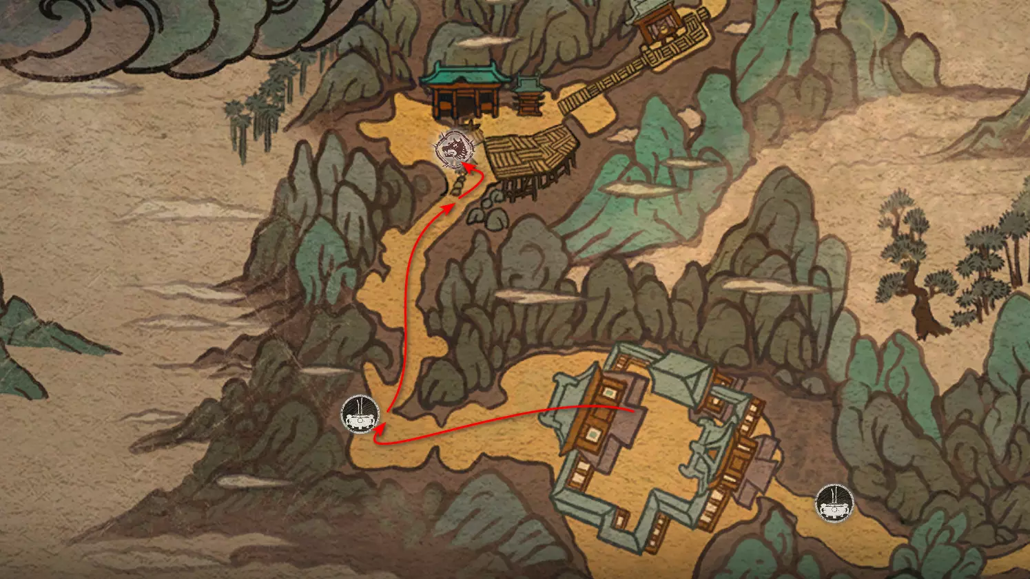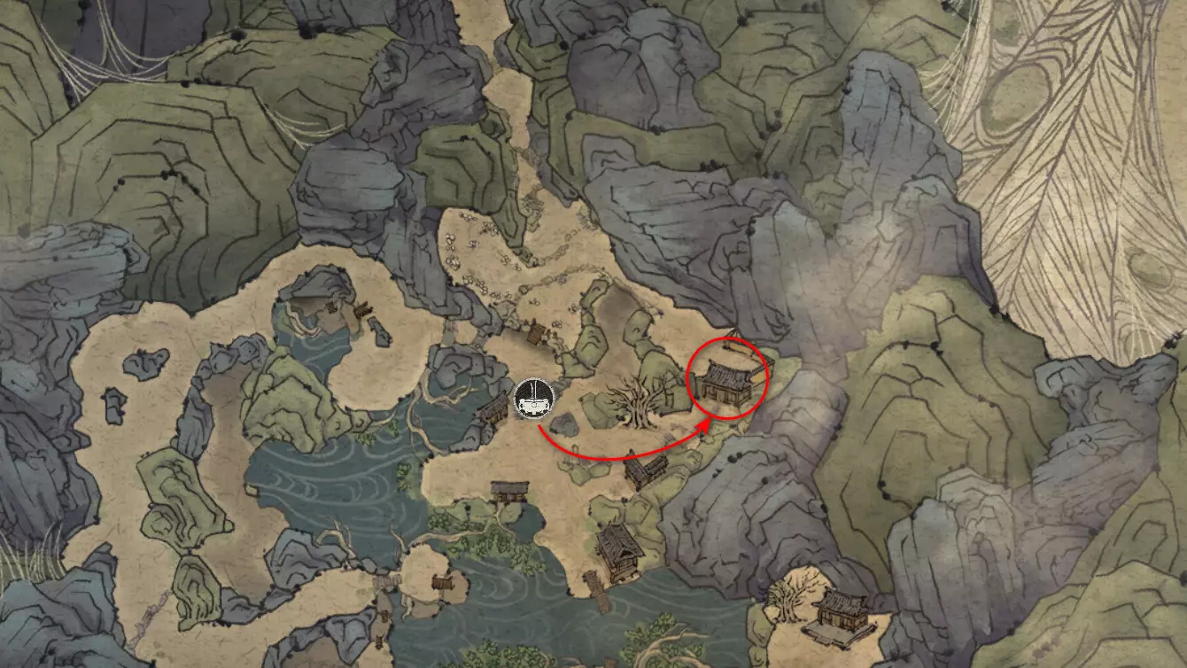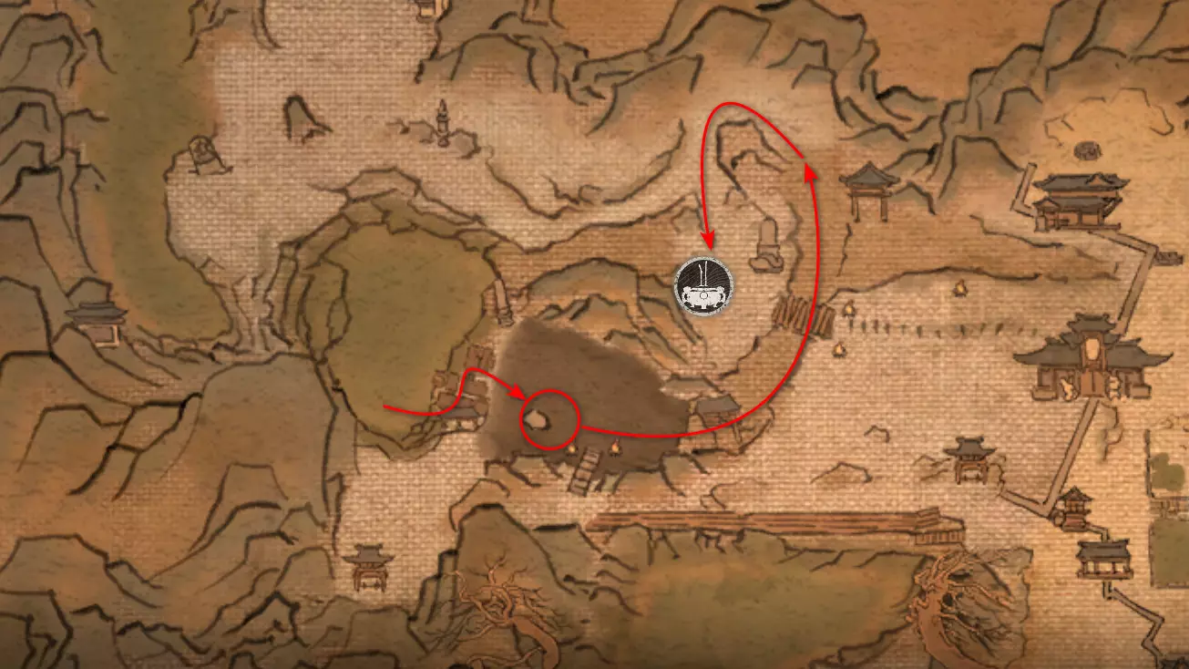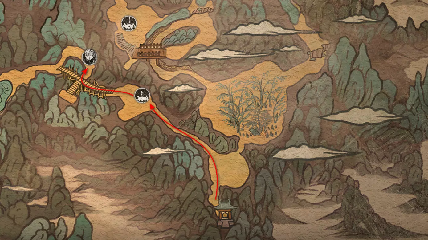 胜利后获得: 配方【1/14】-“辟邪丹药” 沿着木质结构向上攀爬,在顶部会遇到一只狐狸。这个角色是“ Shui Dog”。与他对话后,他会要求归还我们已经拿到的配方以及青蛙 boss。直接交给他,就能获得在祭坛制作药水的能力。 在附近开启“入村祭坛”。购买“烈风崖”地图