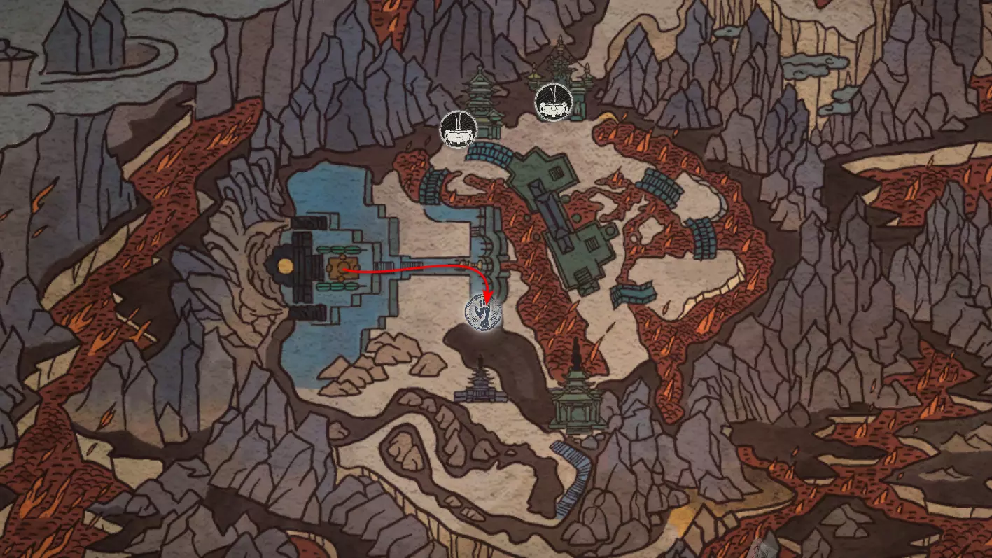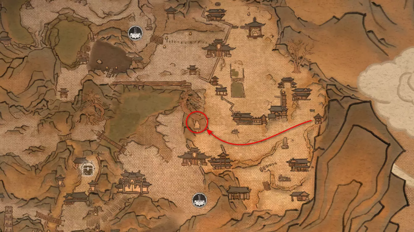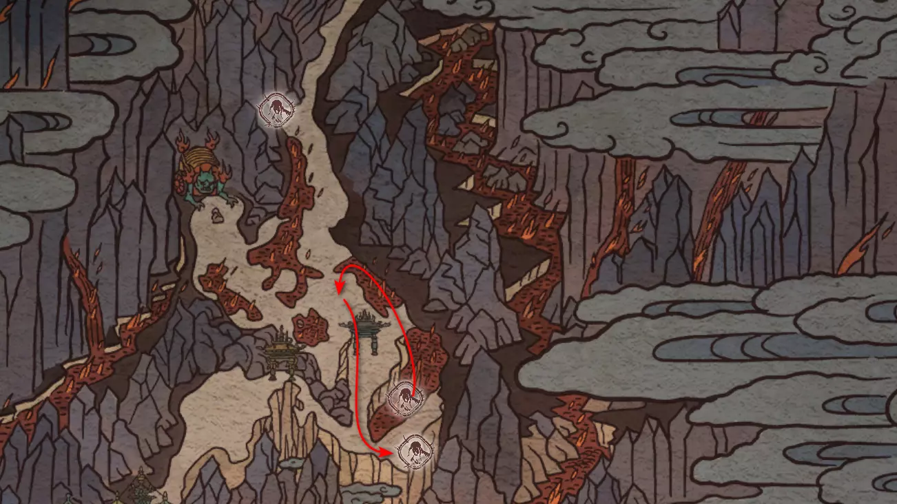 沿着通往拱门桥的路跑,然后左转前往熔岩中的寺庙。在那里我们会遇到手持药瓶的玄奘法师[5/5]。相遇前需要将初始的【和尚医师药瓶】升级到最高级。