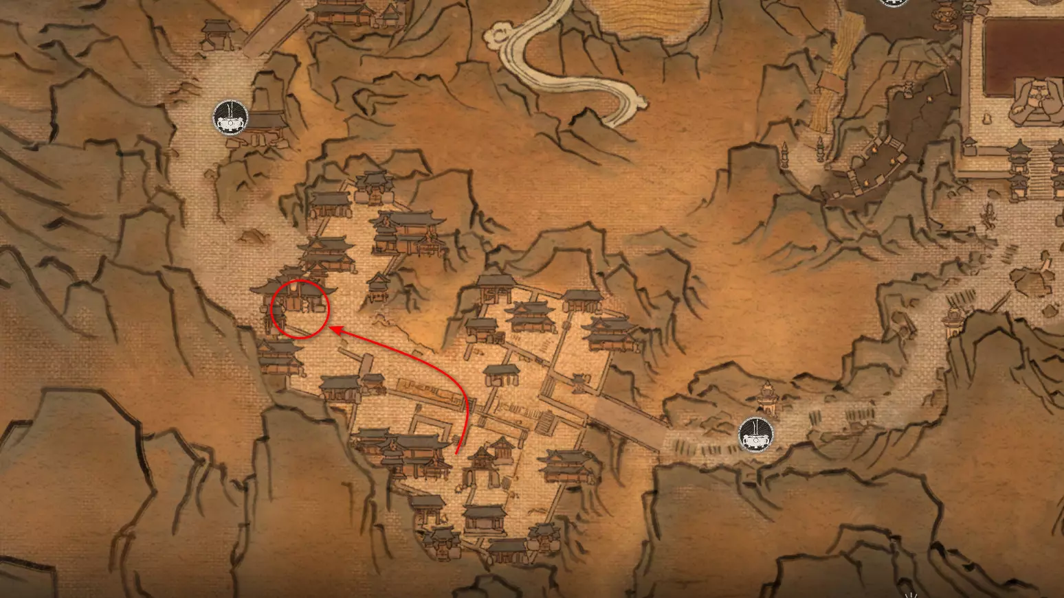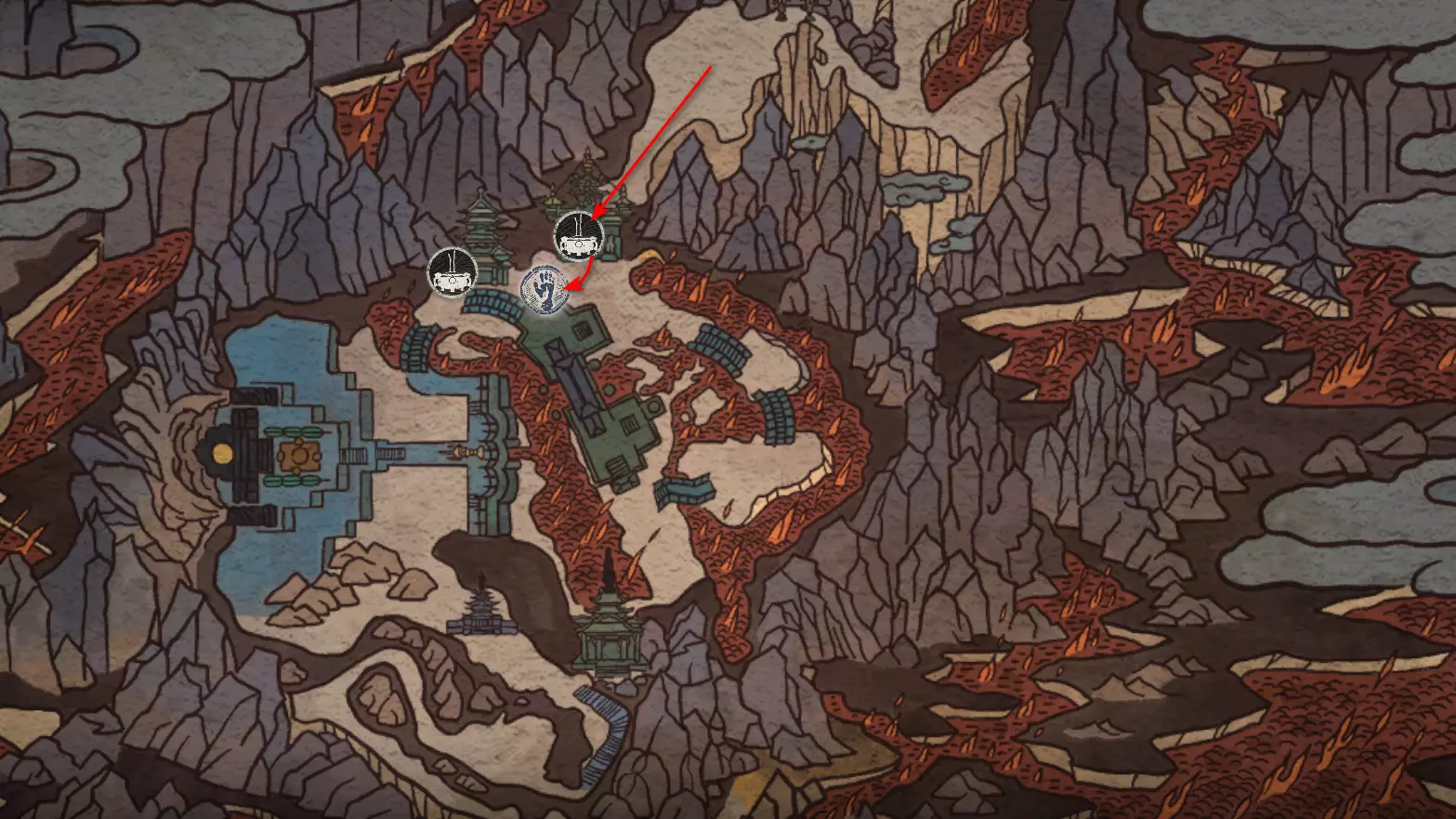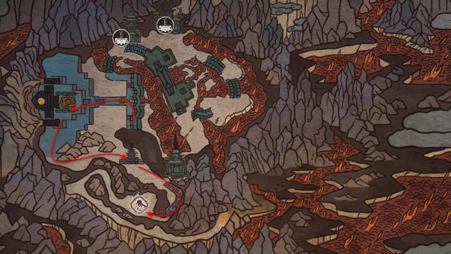 沿着通往拱门桥的路跑,然后左转前往熔岩中的寺庙。在那里我们会遇到手持药瓶的玄奘法师[5/5]。相遇前需要将初始的【和尚医师药瓶】升级到最高级。