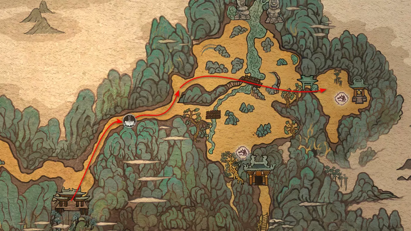 命运之战 两个意识注定要展开对决——最终只有一方能存活。小妖 鹰兵 犬兵 狼兵 天兵队长 妖王 石猴 毒王 水陆兽 浪潮之主蛟龙王 蓝宝宝 金甲犀牛 云鹿 风幻将军 碧玉螳螂 妖王 巨石傀儡 角色 天庭御史 猕猴首领 弥勒 上神 二郎神 大圣遗骸智者袁守诚 第六章 - 山前注意:在本章中,你可以偏离引导路线,直接收集独特的装备和武器,之后再回来挑战秘密 Boss。这样你能更快获得更好的装备和武器,与 Boss 的战斗也会更轻松。而在第二次及后续周目中,路线将是收集所有物品的最佳选择。 猴子“申”现在可以购买: 购买瓶子[9/10]——“七彩琉璃瓶” 购买饮品[8/8]——“千日醉” 购买饮品添加剂[25/27]——“绽放花苞” 集齐所有饮品后可获得成就: