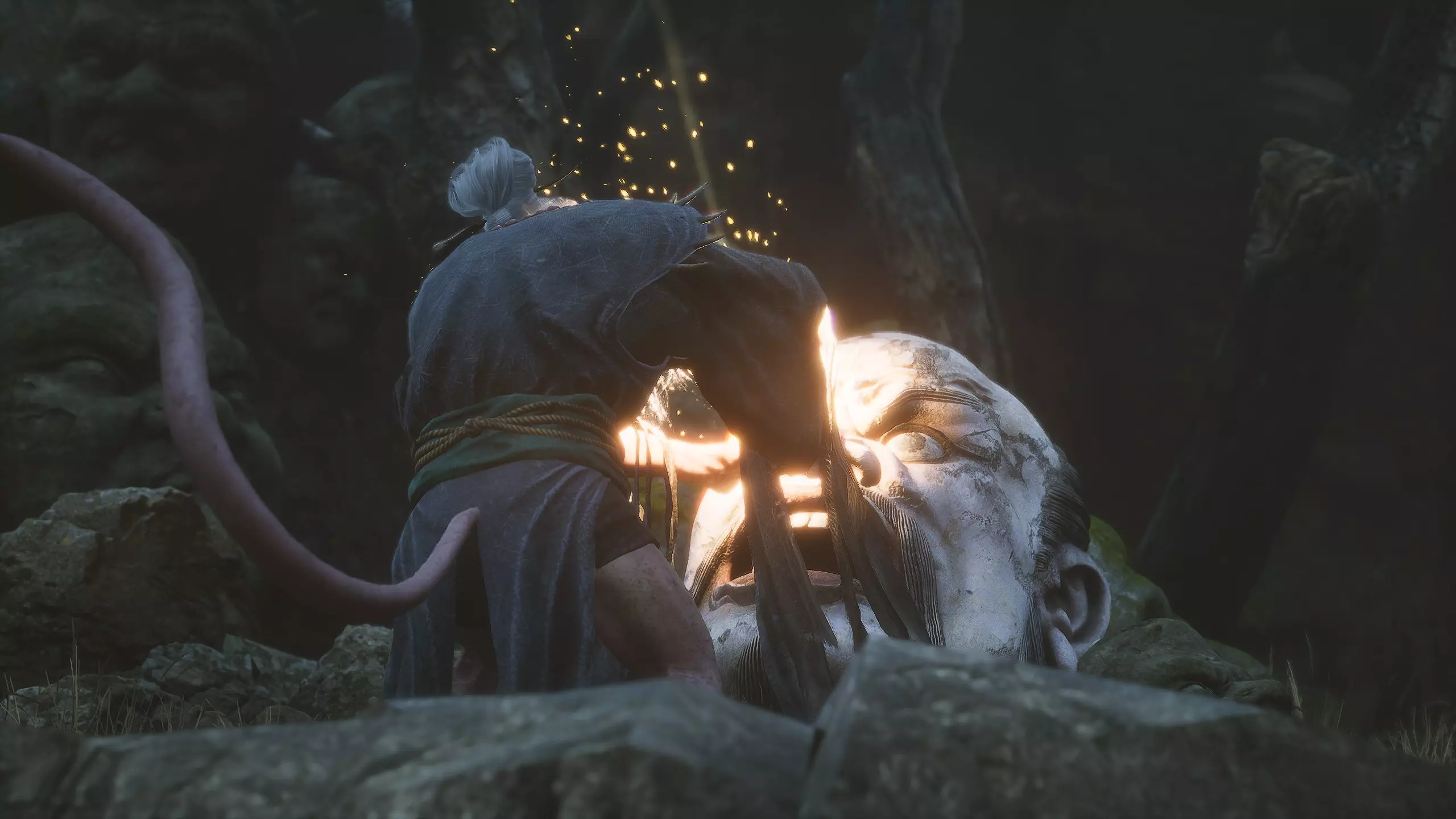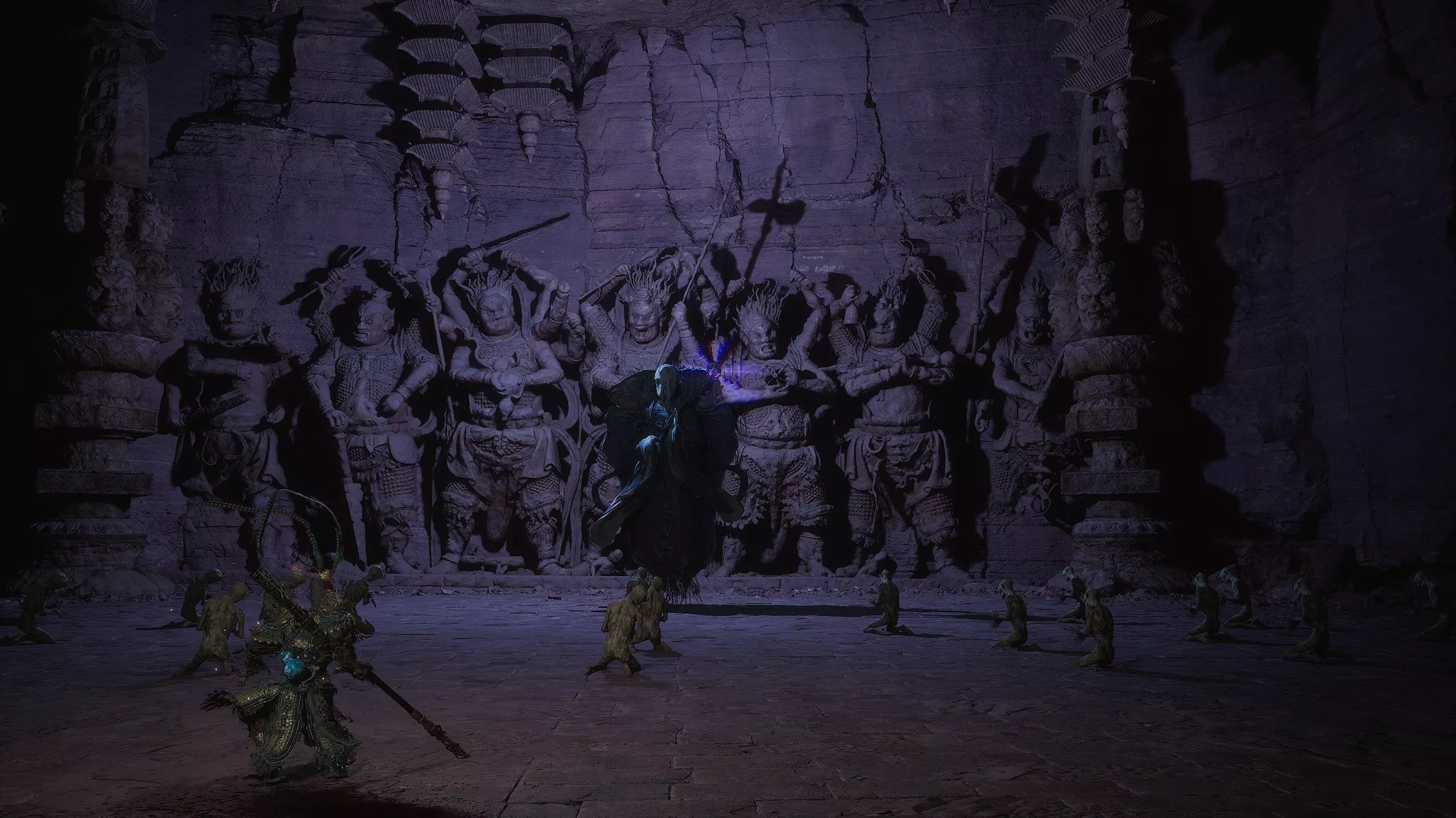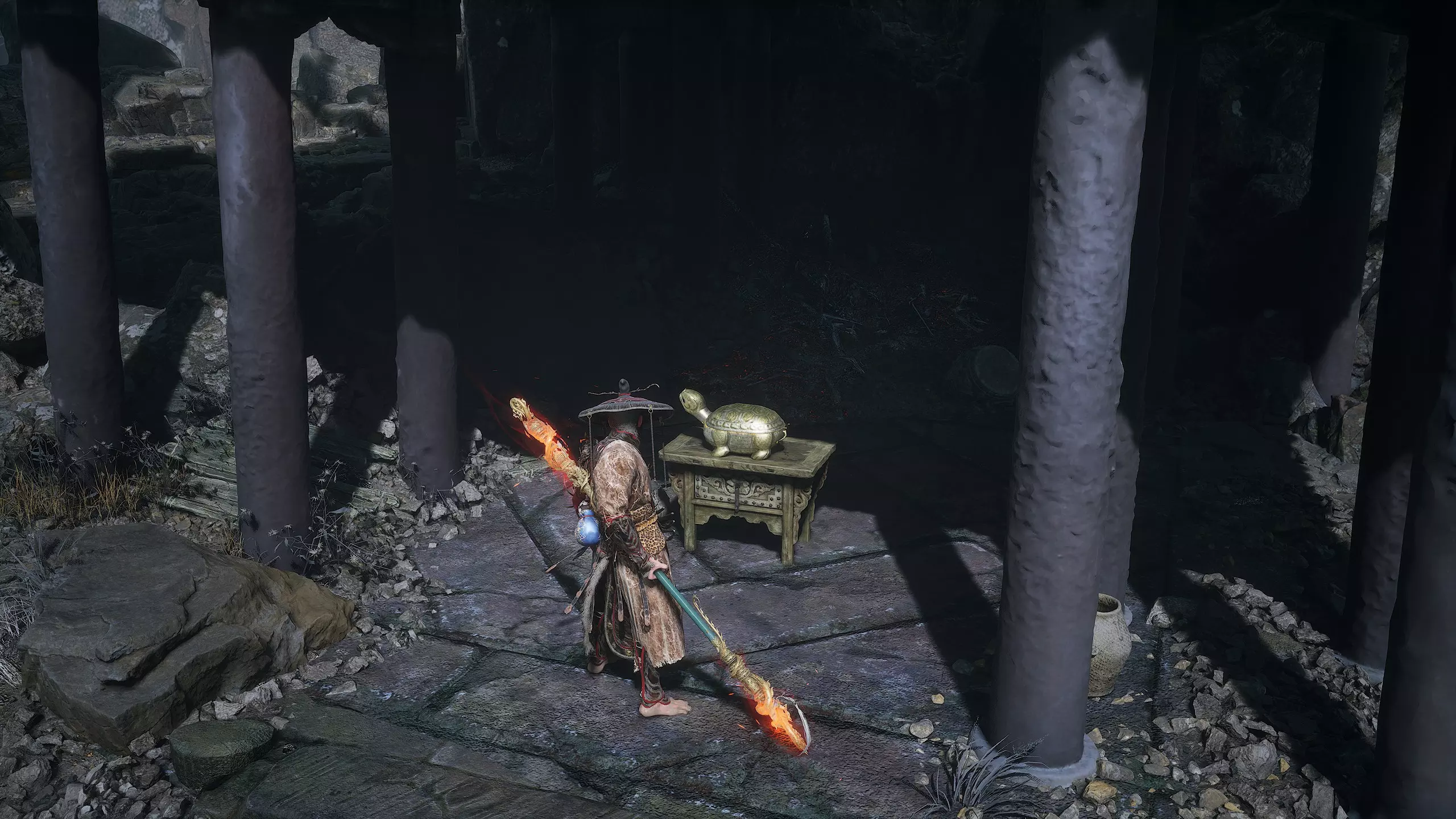 集齐所有【佛眼】后,需返回【石撞祭坛】。在你曾与【石之守卫】战斗过的竞技场,现在可以召唤 Boss【石之傀儡】了。靠近石堆并与之互动即可。