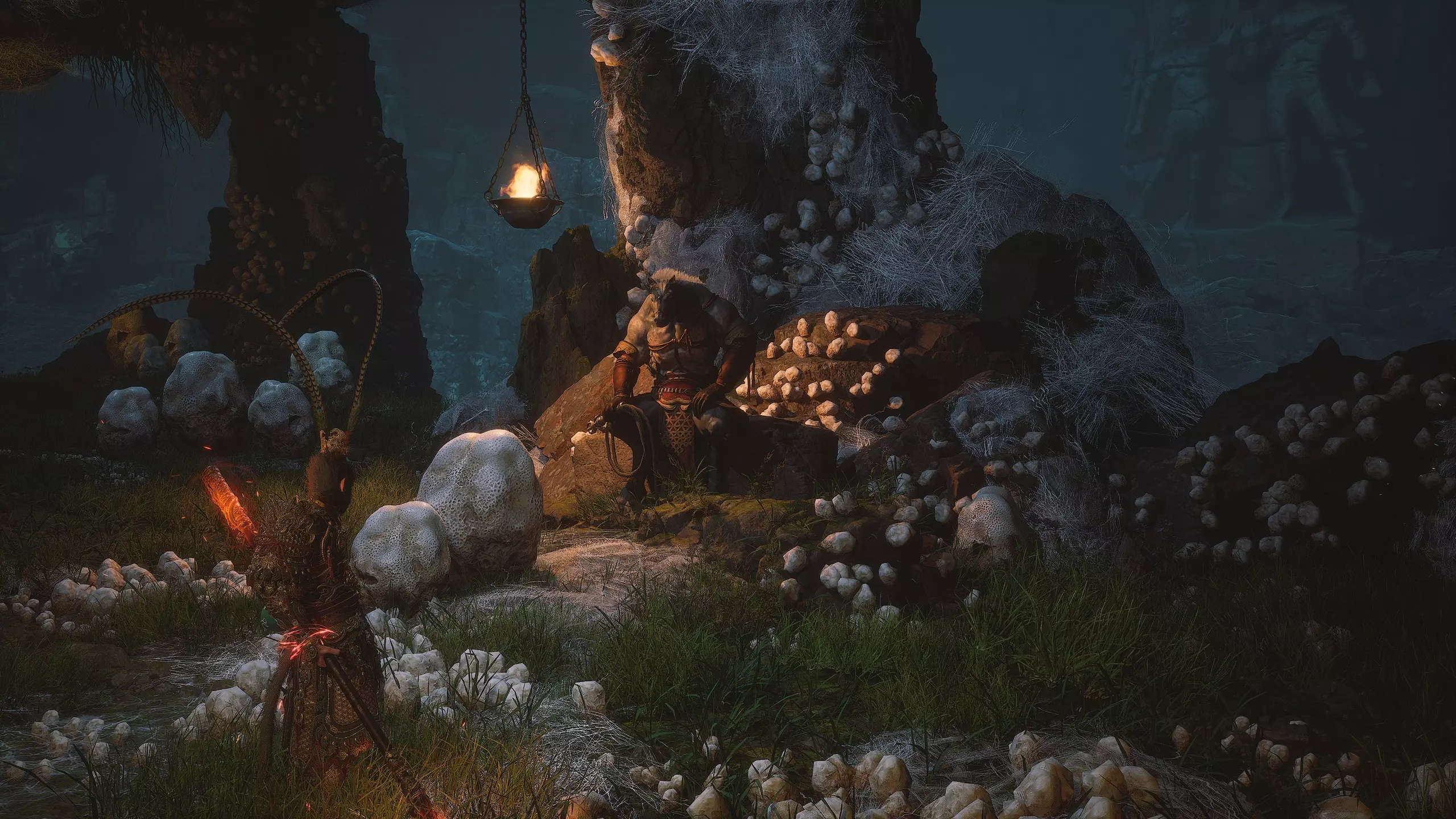 第一章 - 竹林 从寺庙出来后,开启“远山”祭坛。沿着小路前行,在左侧找到通往洞穴的小径。洞穴中住着一个半人半马的角色,名为马天霸。与马天霸的相遇[1/5]