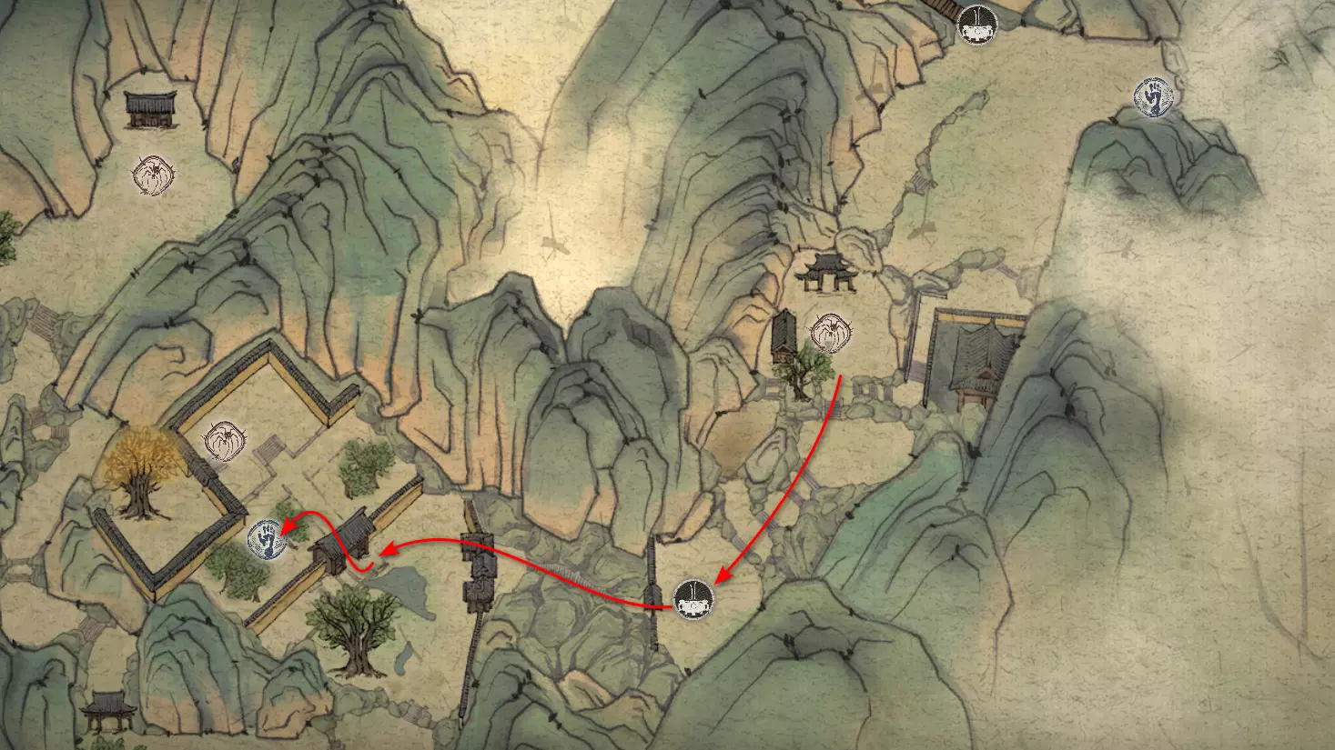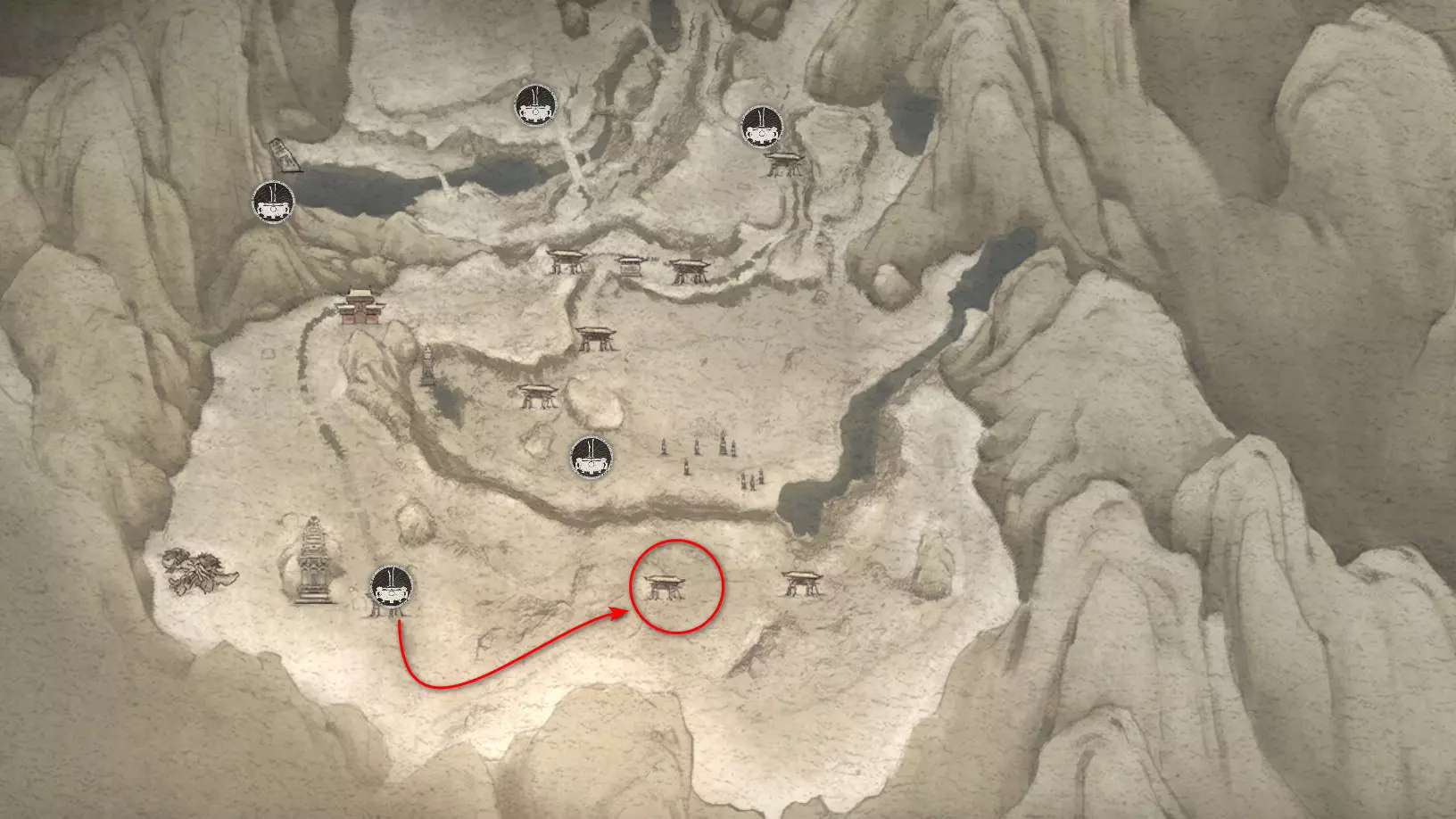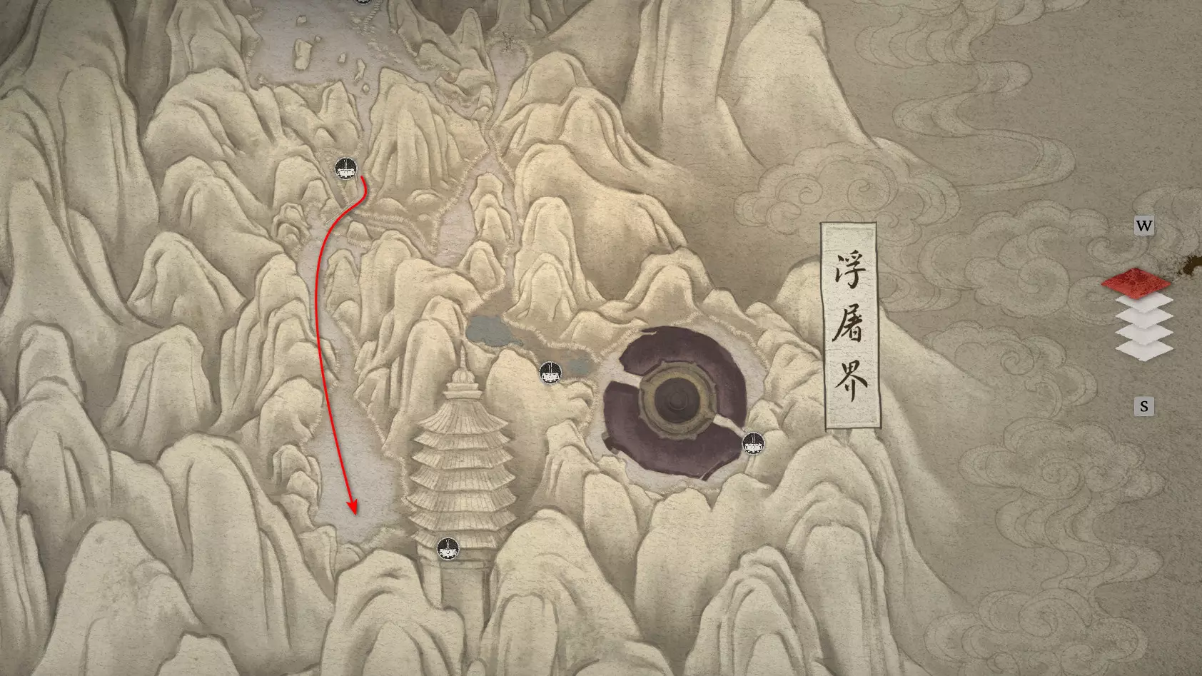 虎之家族 父子——你已与他们全员相遇。 继续前进,开启祭坛——【沙门关边界】。左侧是冥想点[7/24]——【沙门关边界之岩】。召唤 Boss