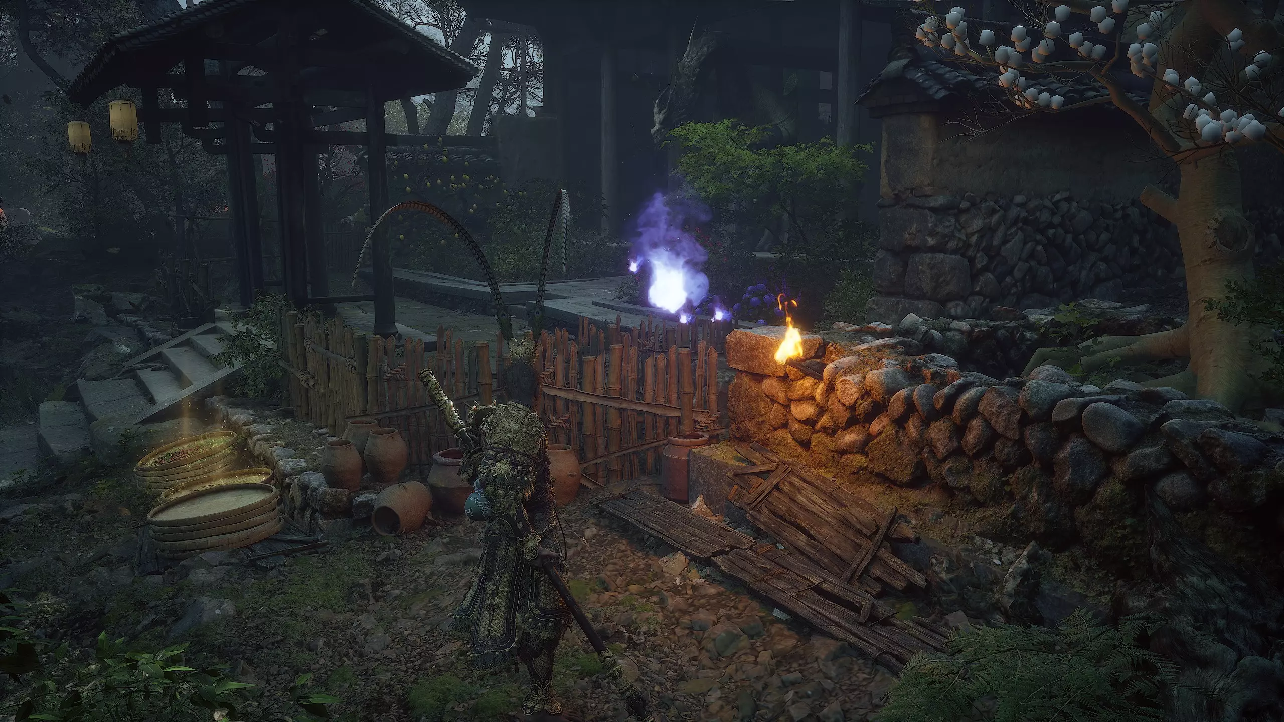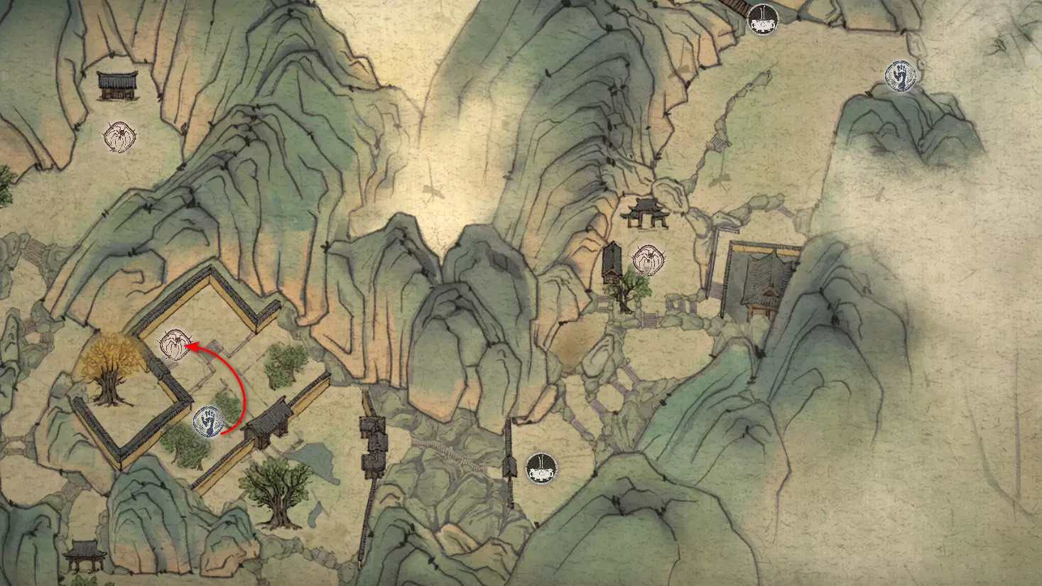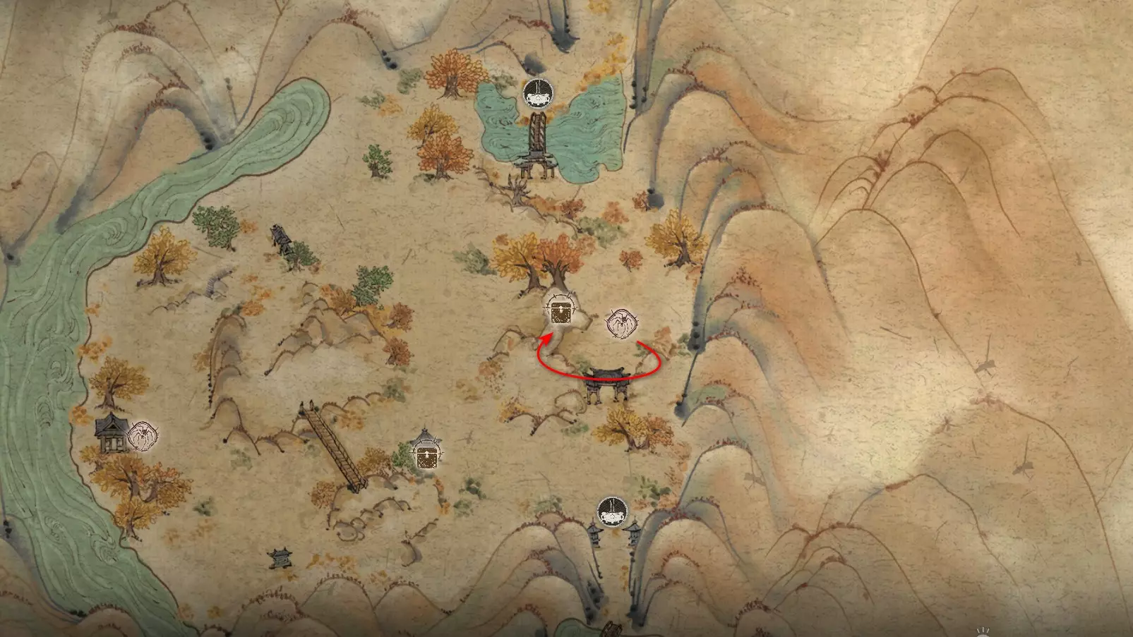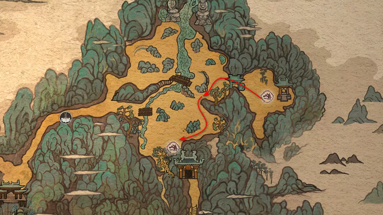 黑风烈焰 不该玩火…… 被吞噬的灵魂 - 4个 游荡的死寂(可跳过) 宝利古兰 官帽 猎狼者 奇珍异宝 - 4个 猫眼石珠子(稀有) 玛瑙容器(稀有) 博山香炉(稀有)-将在第二章解锁 痒痒挠(稀有) 饮品添加剂 - 4个 胆结石( uncommon) 天界莲子(稀有) 易碎的软玉莲花(稀有) 钢铁人参(稀有) 种子苦楝籽 琉璃 lotus籽 小妖精-14只 狼纹者 狼士兵 狼战士 狼弓箭手 狼哨兵 狼杀手 夸昆 先知乌鸦 匪首 骨蛇 蛇哨兵 小蘑菇 人参 妖精首领-4只 守卫公牛 关志 关茂 鲍莉古兰 妖精王-5只 林 Shui-zi 红月(第二章解锁) 德高望重的老者 金池 黑风王 黑毛熊怪角色 - 3个 白衣仙姑 黑风山守护者 神猿 第一章 - 黑风山 收集植物【玉净瓶莲花】可获得: 饮品配料[1/27] - 【易碎的玉净瓶莲花】 植物种子[1/12] - 【玉净瓶莲花种子】 收集植物【成熟的人参】可获得: 饮品配料[2/27] - 【钢铁人参】 收集植物【苦草】可获得: 植物种子[2/12] - 【苦草种子】 黑风山 登场与两只侦查狼战斗后,沿着小路前往第一个【近山】祭坛。在祭坛处获得【松林之巅寺庙】地图。祭坛之后,穿过桥梁并从左侧跳入水中。沿着溪流走到尽头,找到蕴识[1/5]——【身蕴】