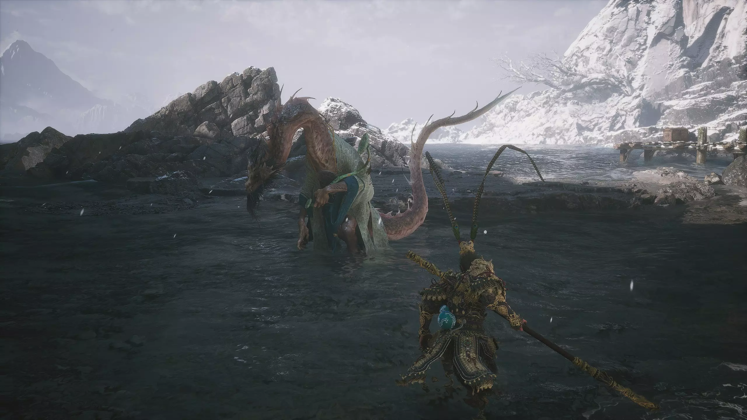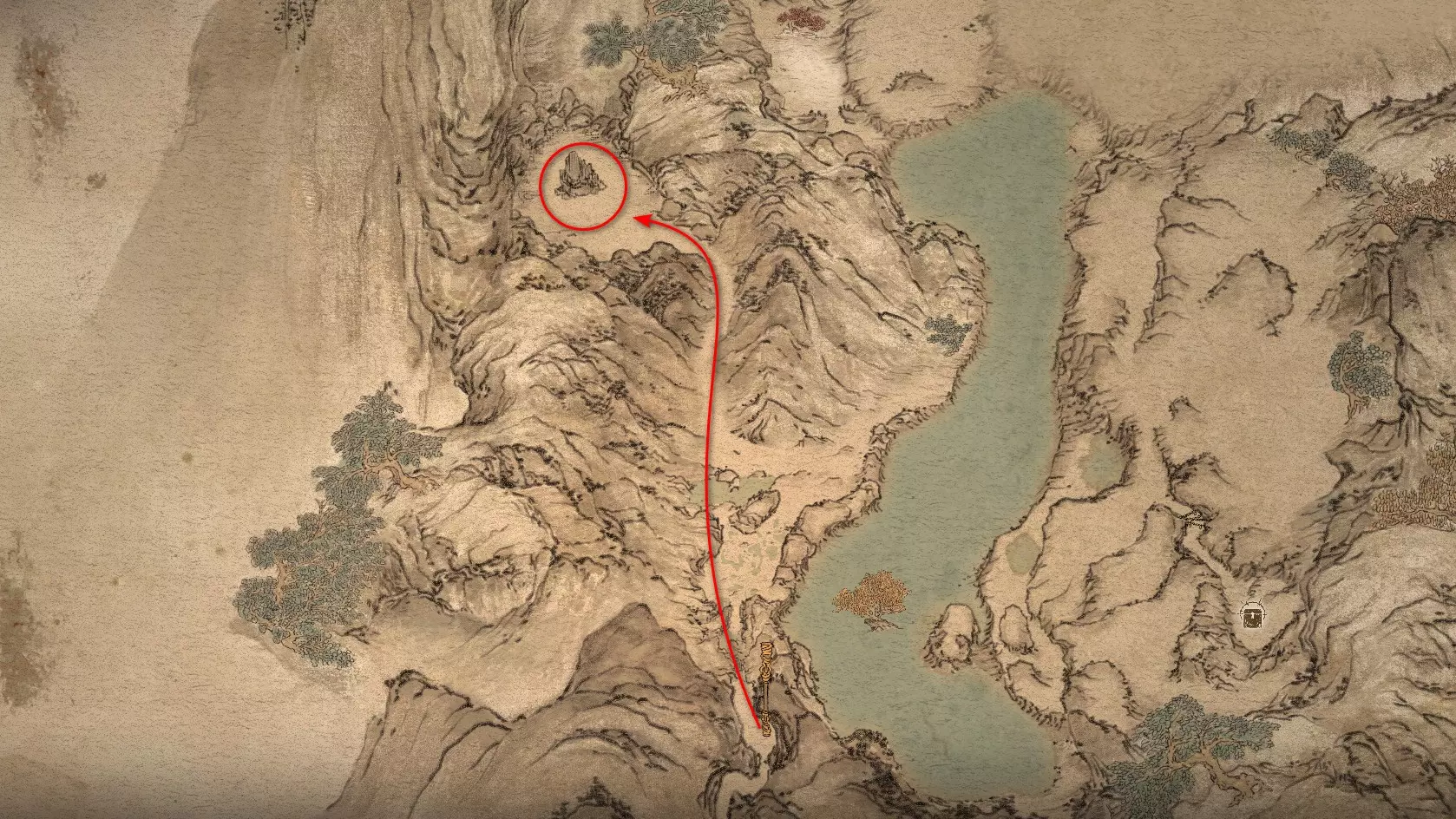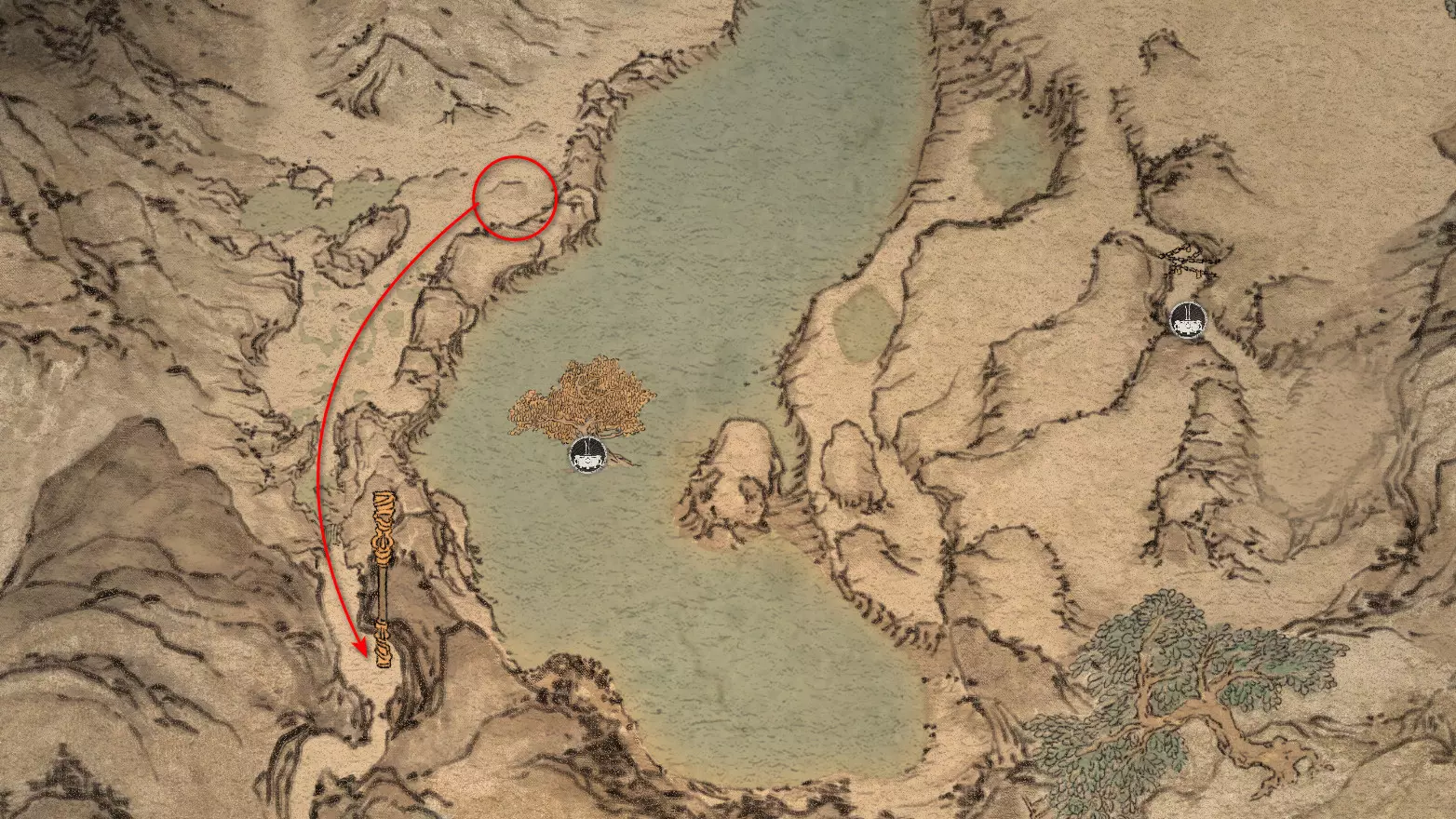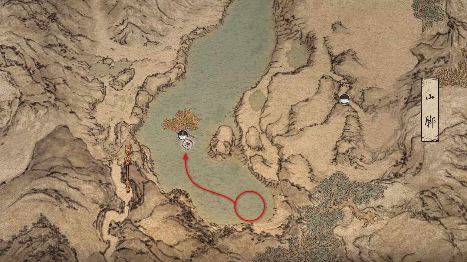 前往南部的孤湖,它位于第一个祭坛附近。走到湖中心,水中会出现隐藏 Boss【2/5】——“蛟龙王,波涛之主”