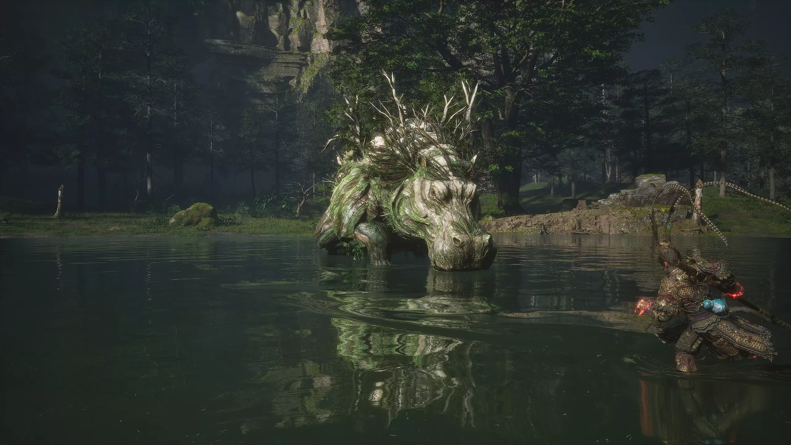 奇异藏品 这是世间所有奇物最完整的收集。 继续向南飞往河流源头。需要找到水面上的气泡。潜下去后会出现秘密 Boss【3/5】——"水林之兽"