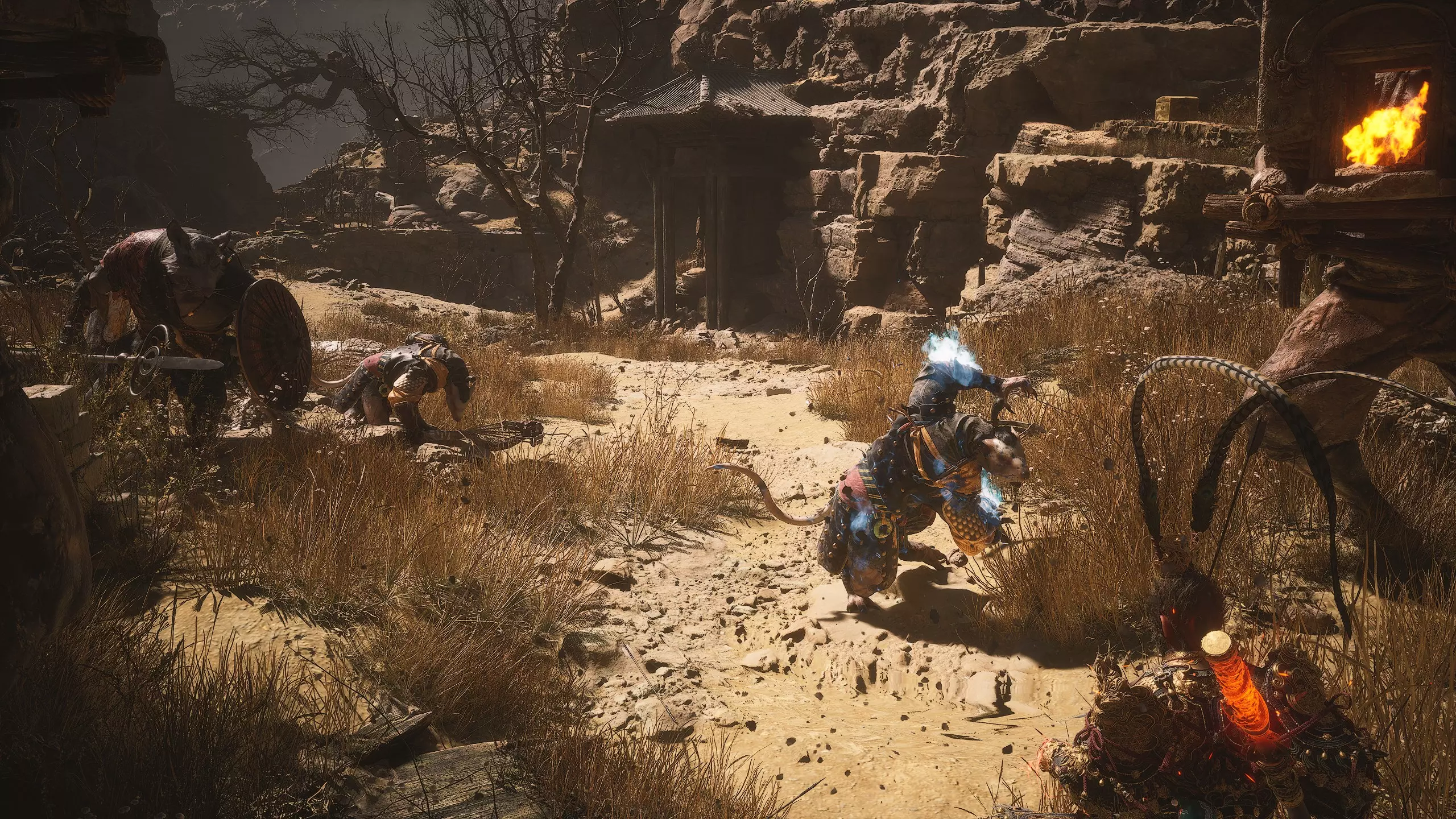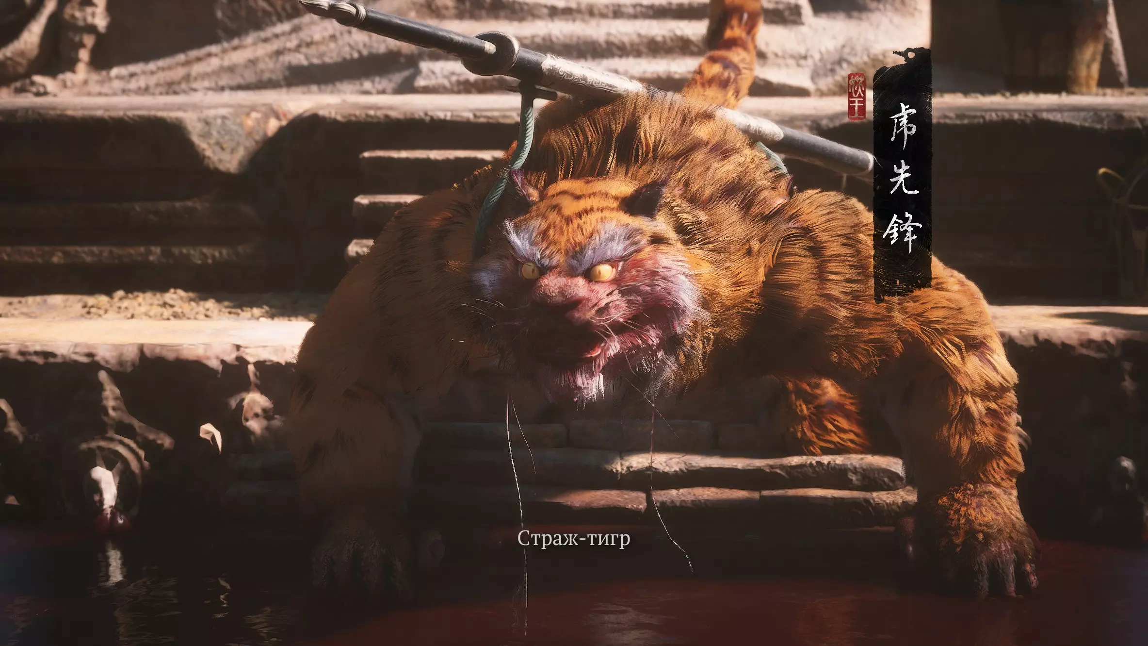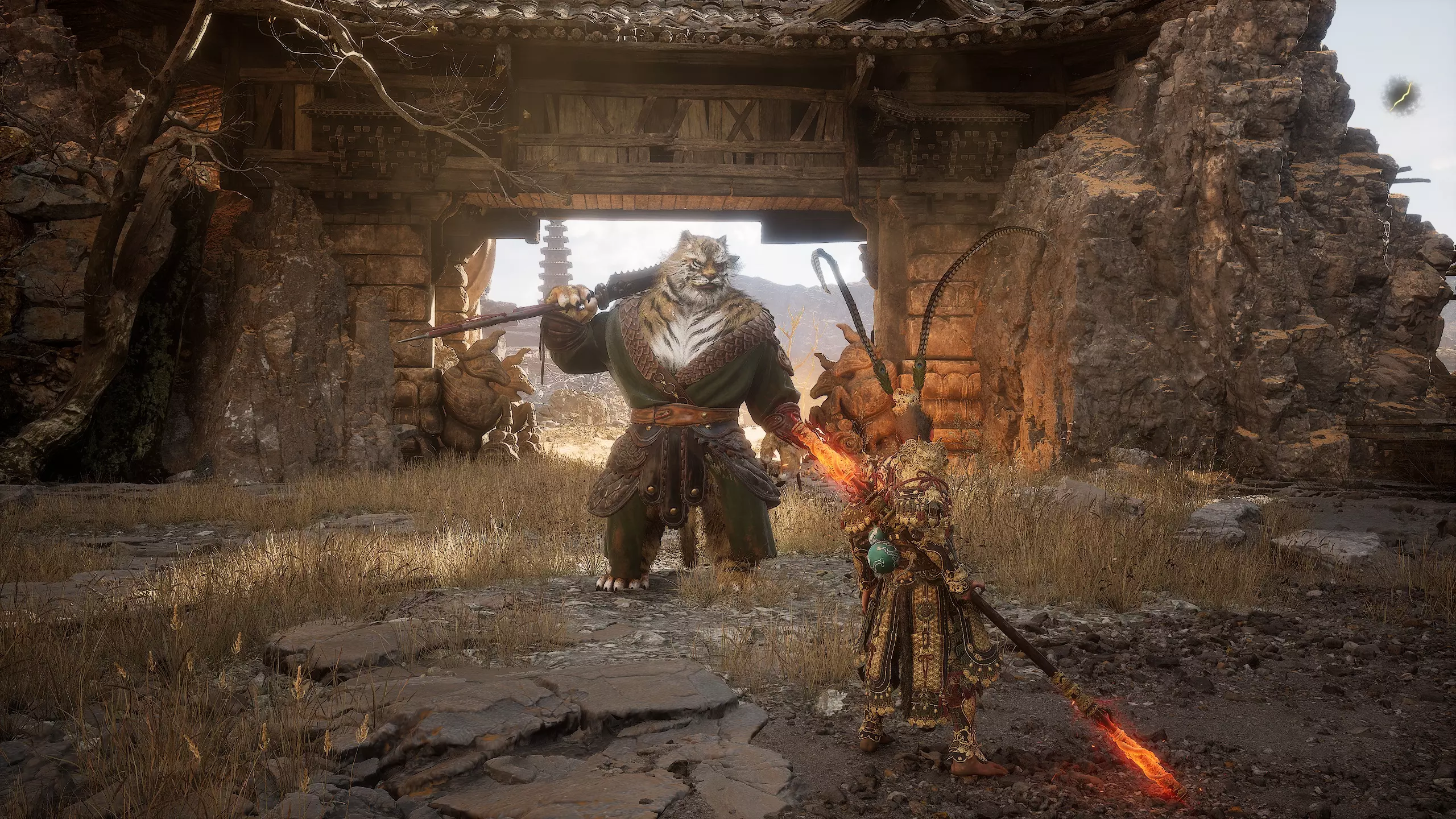 金光 有个醉汉声称这里有黄金。这会是真的吗? 第二章 - 沙狸国(秘密) 过场动画结束后向前跑,打开祭坛【沙之门隘口】。祭坛后面会有 boss - 老虎[3/3] - 【虎卫】