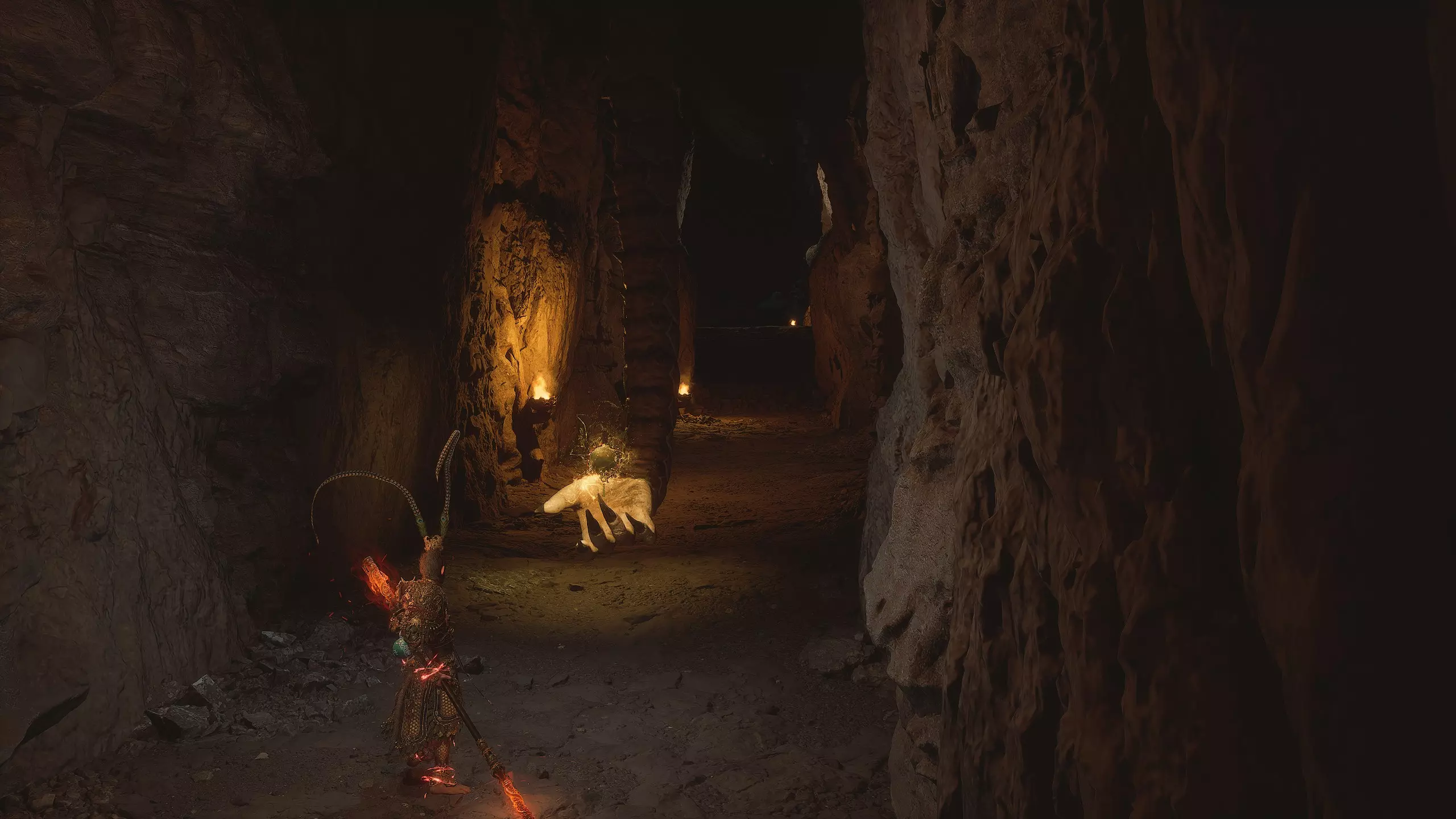 在洞穴中我们会遇到一个强大的敌人,击败它后可获得【妖王之魂】[45/54]——“灰烬行者”