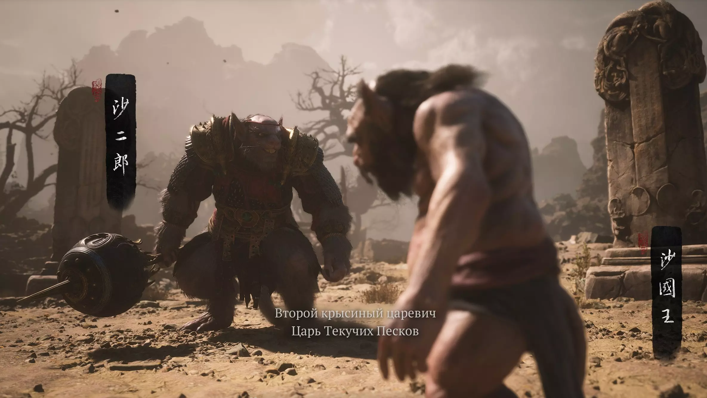 打开村庄大门后,里面是双 Boss——【流沙之王】和【二鼠王子】。击败他们可获得妖王之魂[7/54]——【二鼠王子】以及道具【臭肉块】。注意:要优先击杀体型较小的王,否则无法获得胜利后的魂魄。