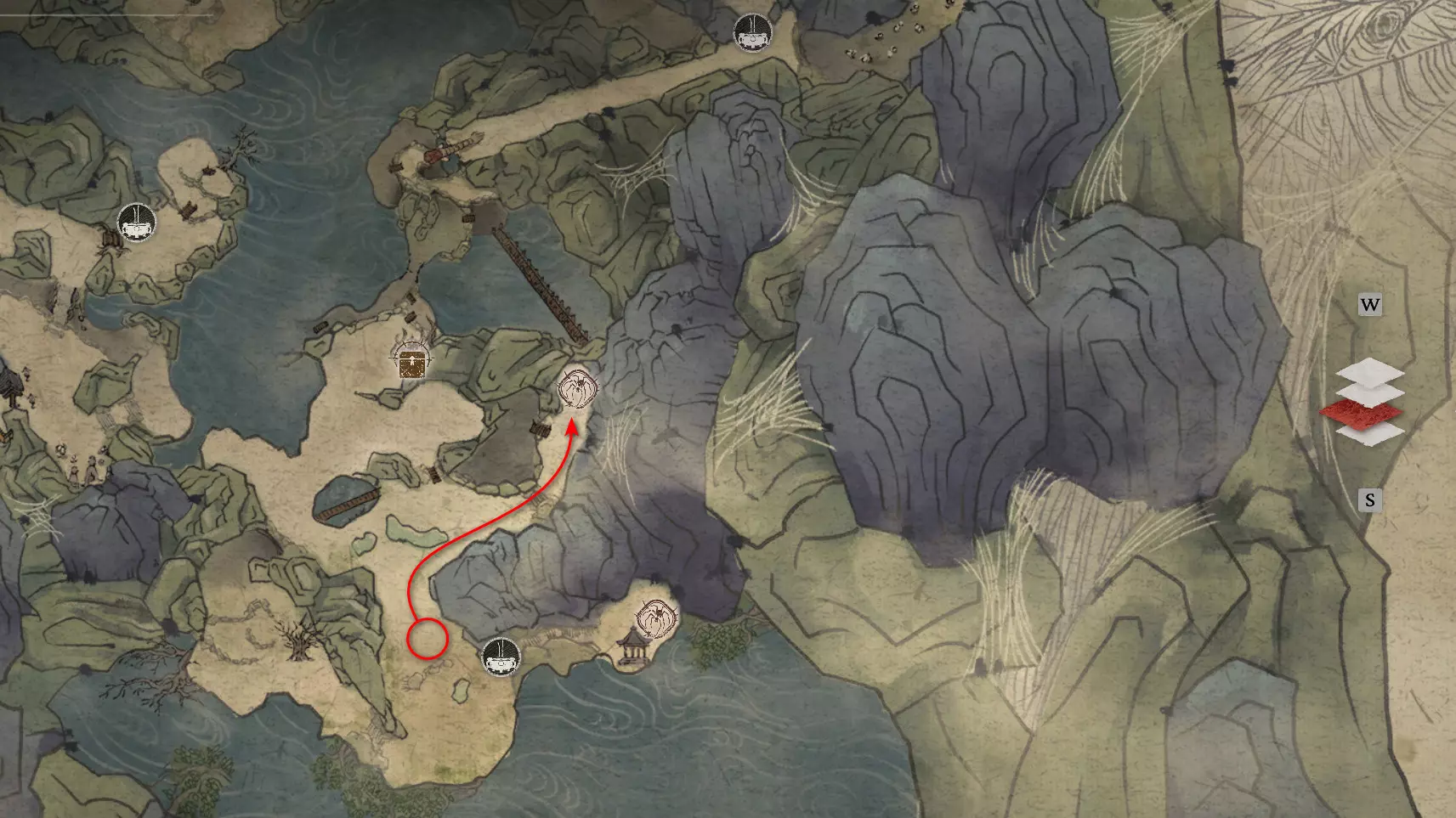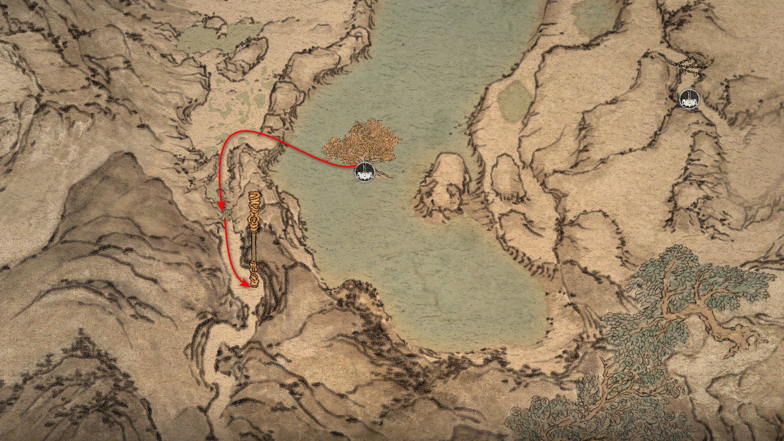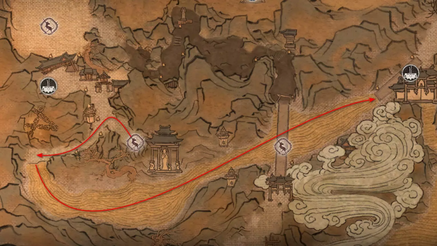 打完纺织娘后前往红树。那里有剧情 boss【云跳鹿】。击败它可获得套装部件【莲花云丝靴】。