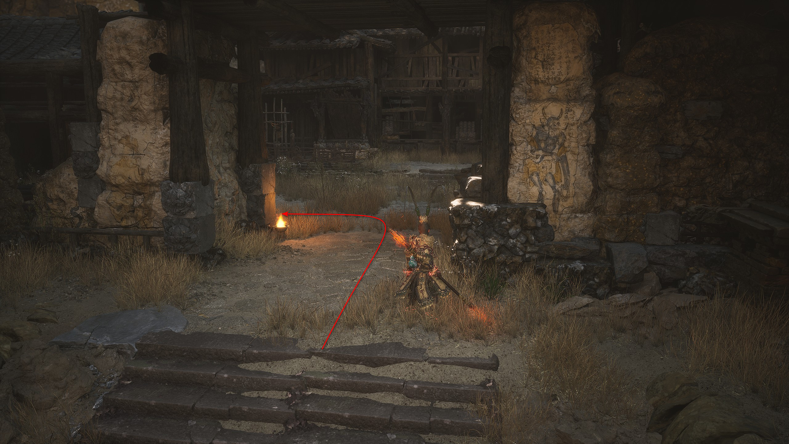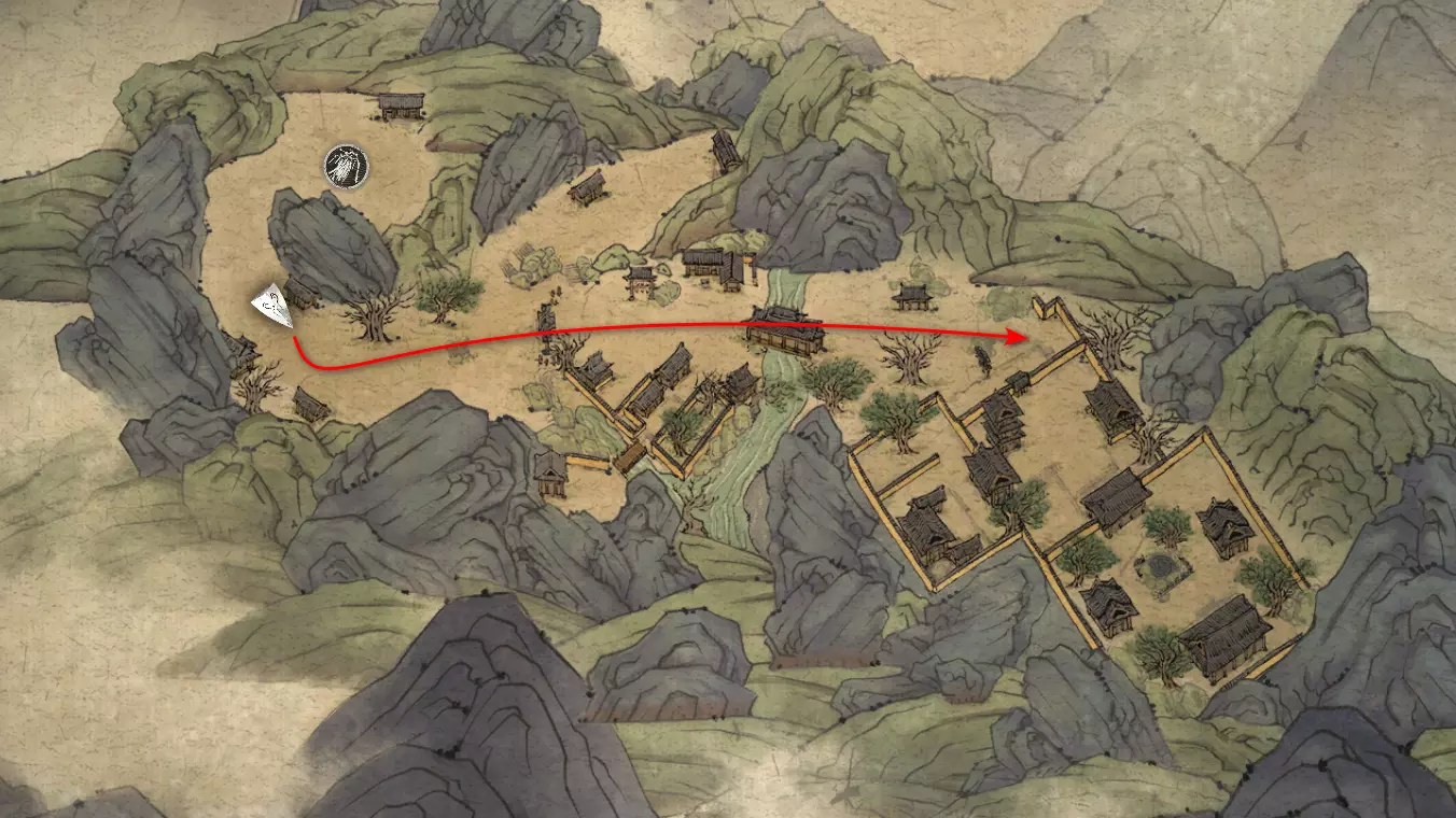 回到“入村祭坛”,穿过大门。进门后左转,一直走到有井的死胡同。