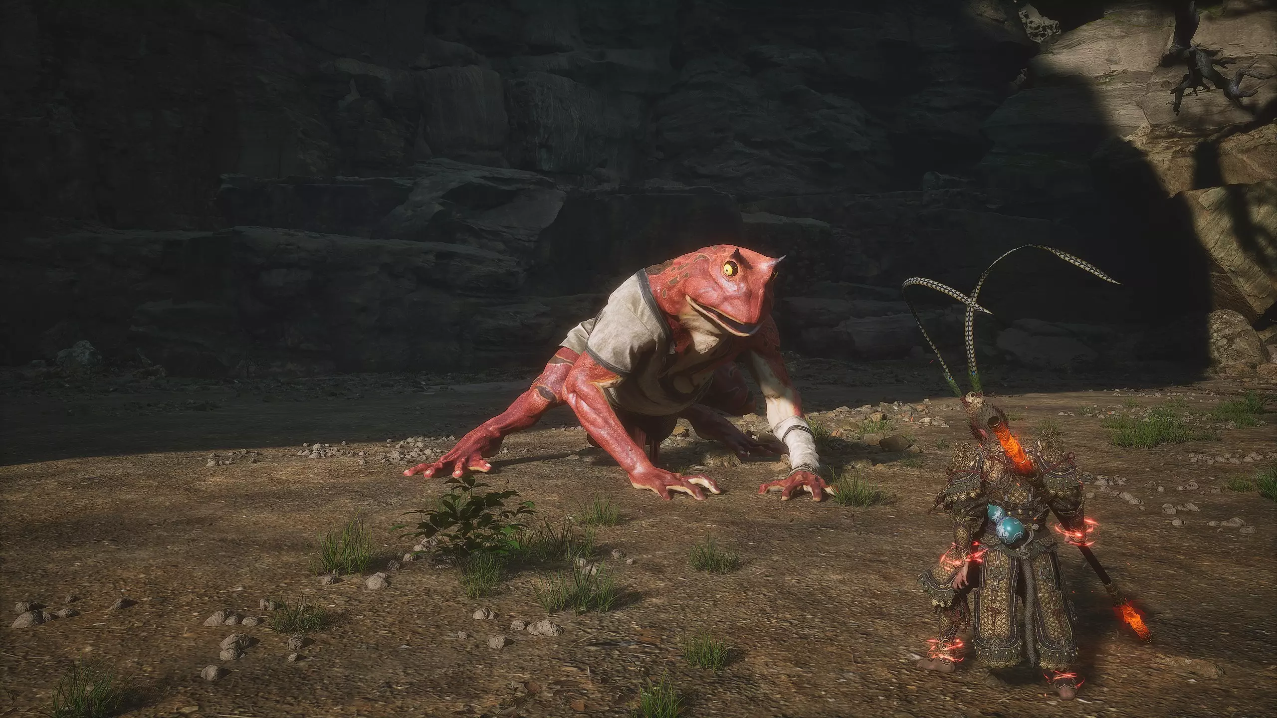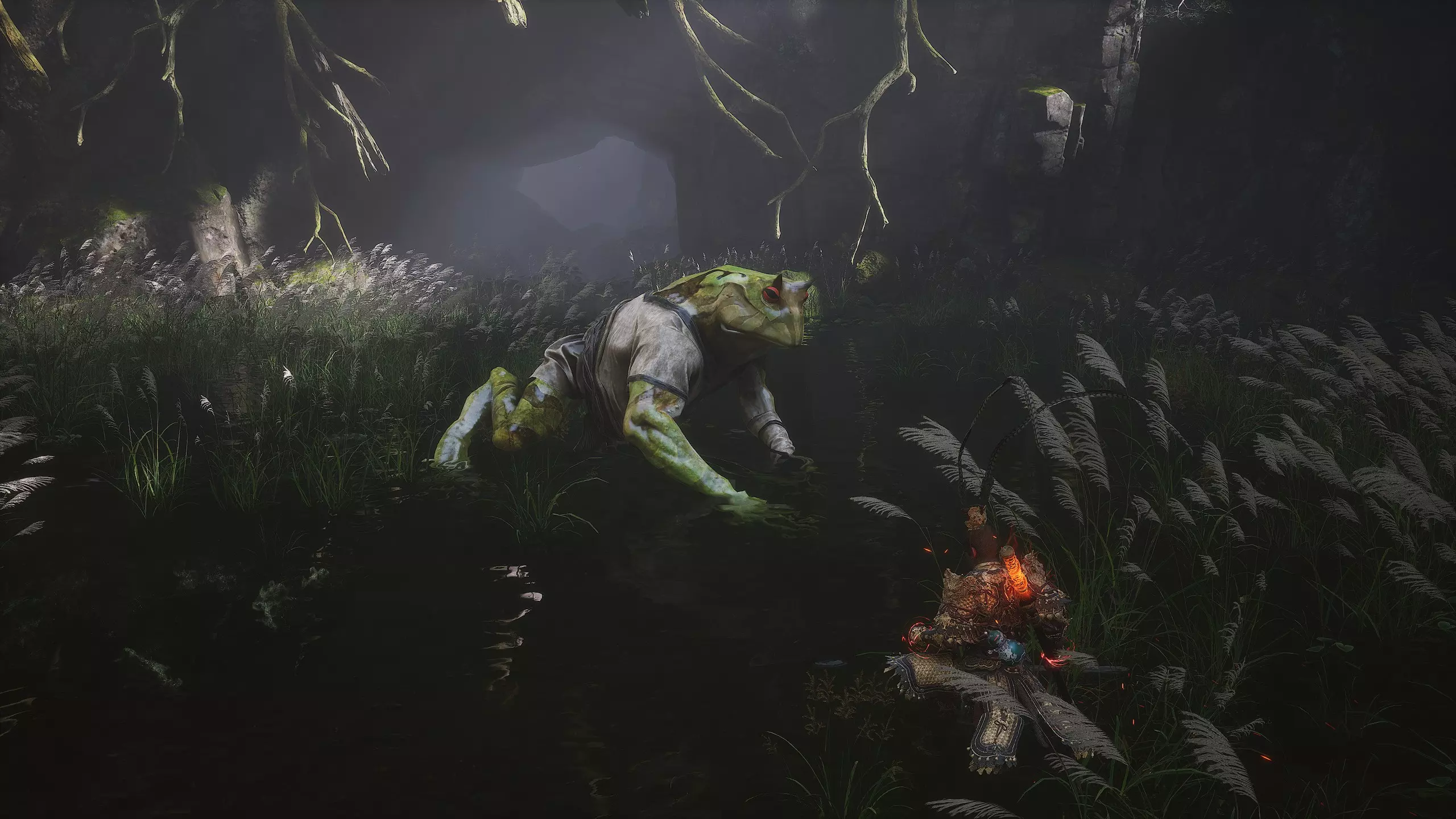 回到水边,沿着水面跑到凹陷处进入坑中。下方有第二只Boss青蛙【兰利鼓包】(2/6)。