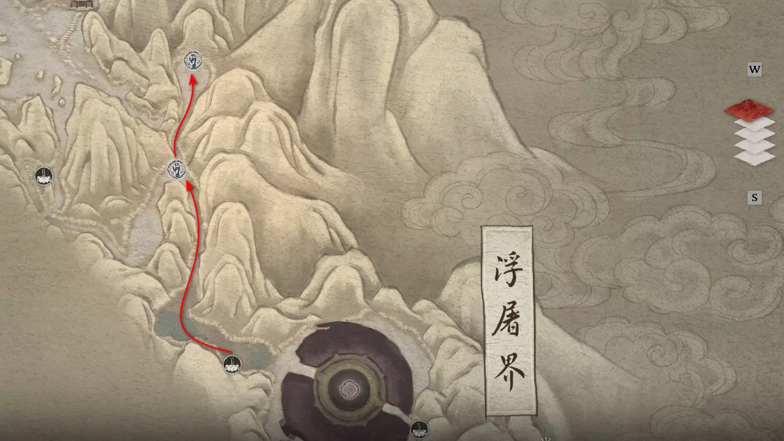 向上攀登时会遭遇攻击,并将遇到名为【红银轿子】的 Boss。