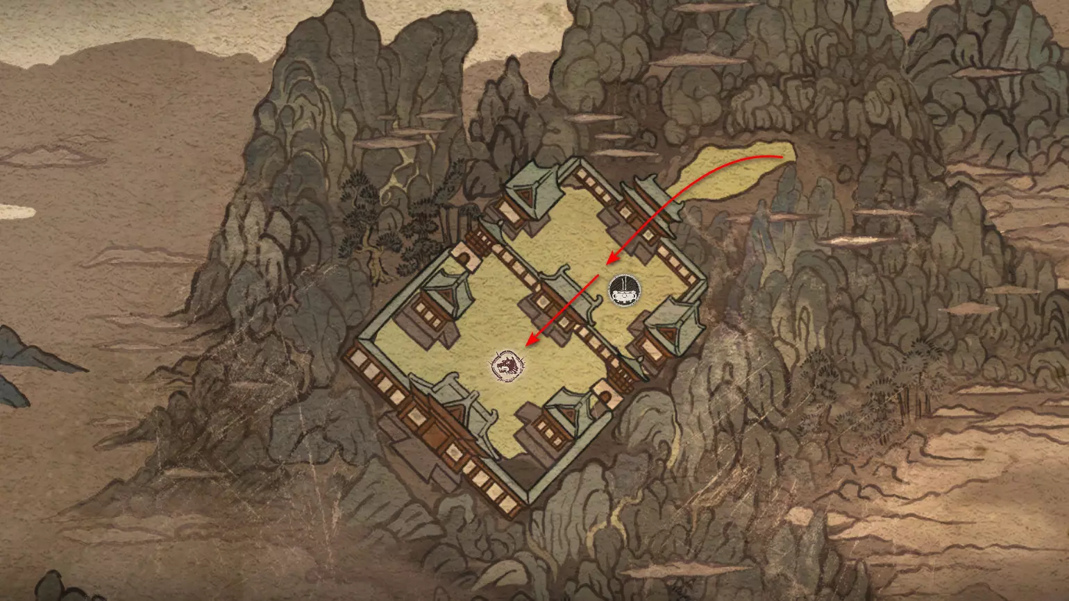 梅山记忆 心中旧结仍牢。 进入新区域后,沿道路前往第一个祭坛【梅岭之巅】。接下来将迎战Boss【二郎真君】。但这仅仅是开始,之后还会有整个游戏中最史诗级的战斗。