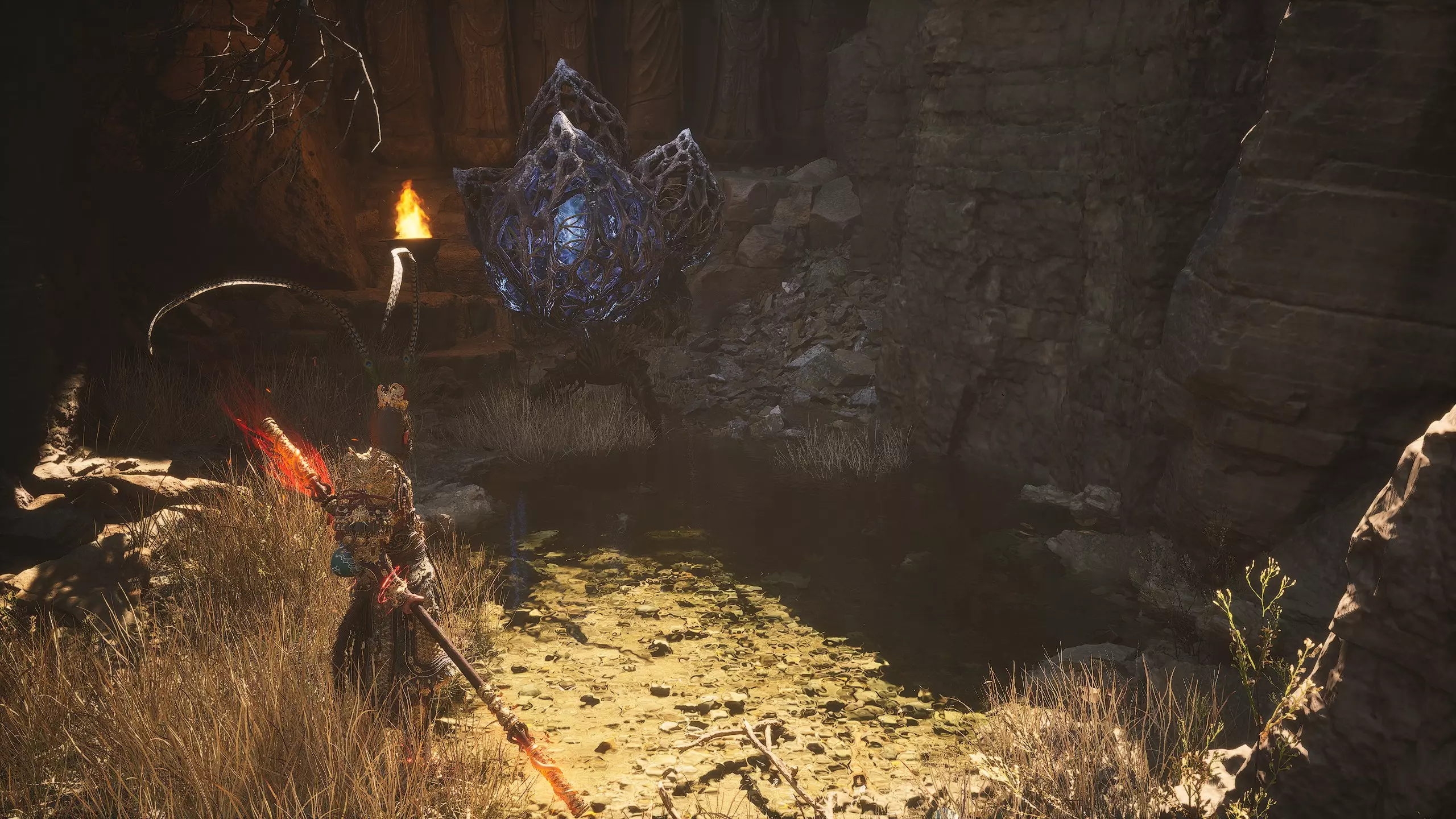继续前进,前方会看到发光的石头,在到达石头之前,右侧会有通往悬崖的出口。收集【佛眼】[2/6]