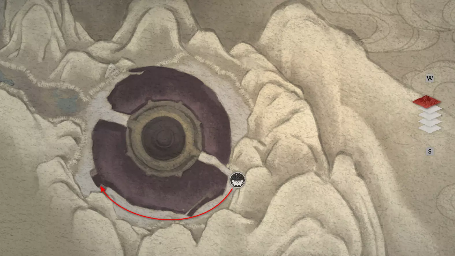 蠕动沙丘 战鼓之下,甲虫现身,余者皆随浪而去。 第二章 - 恐惧之岩 接下来前往岩石碰撞祭坛(恐惧之岩),然后直走。