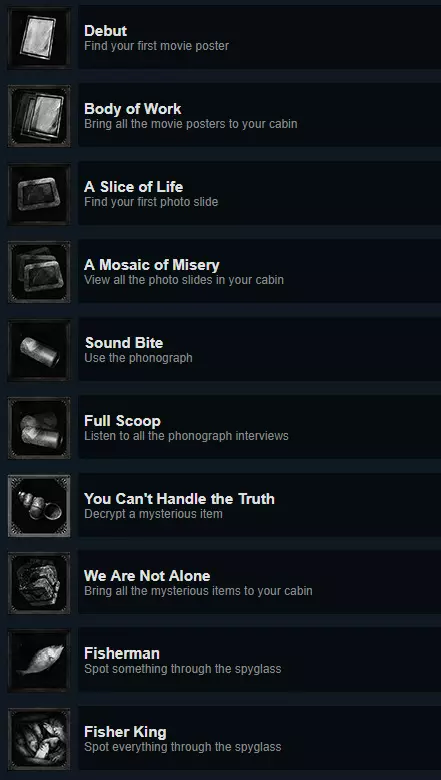 游戏中每个章节会让玩家做出不同的选择,每个选择对应一个成就。 全部遵守导演的指令: 章节1,射击右边的假人。 章节2,从狗嘴里抢过来食物。(需要多按几次,每次方向不一样,不要按错) 章节3,射击玩具。 章节4,遇到血潮直接扭头。 全部违背导演的指令: 章节1,射击左边的假人。(需要多点几次) 章节2,离开,把食物留给狗狗。(同样需要多按几次) 章节3,射击女孩。 章节4,遇到血潮迎面往前,坚持住,打开前方的门。 结局成就