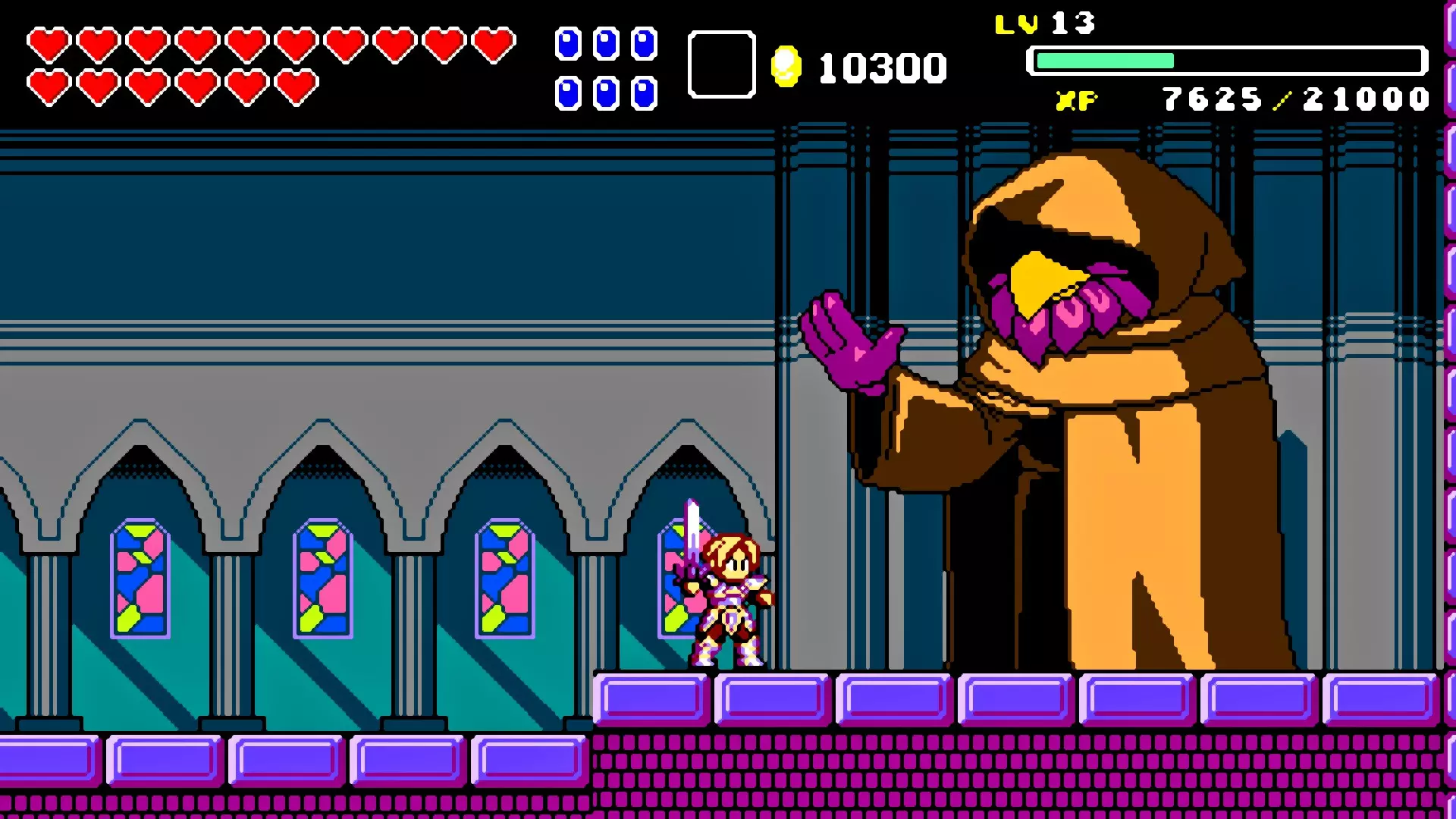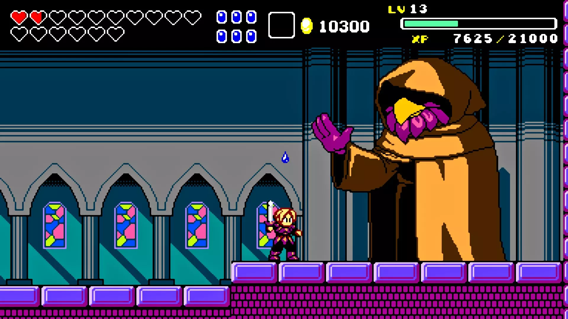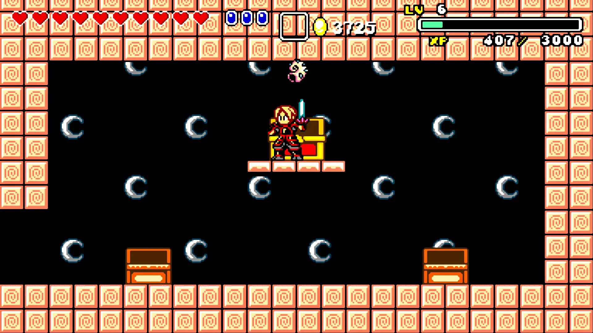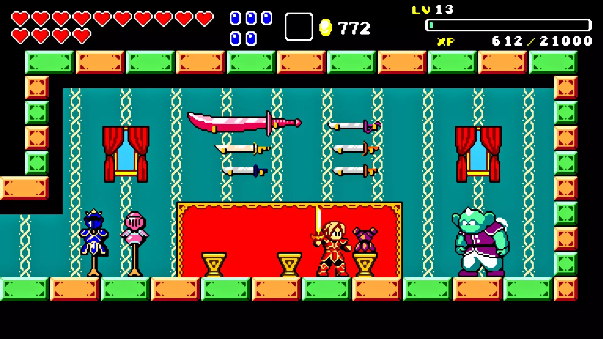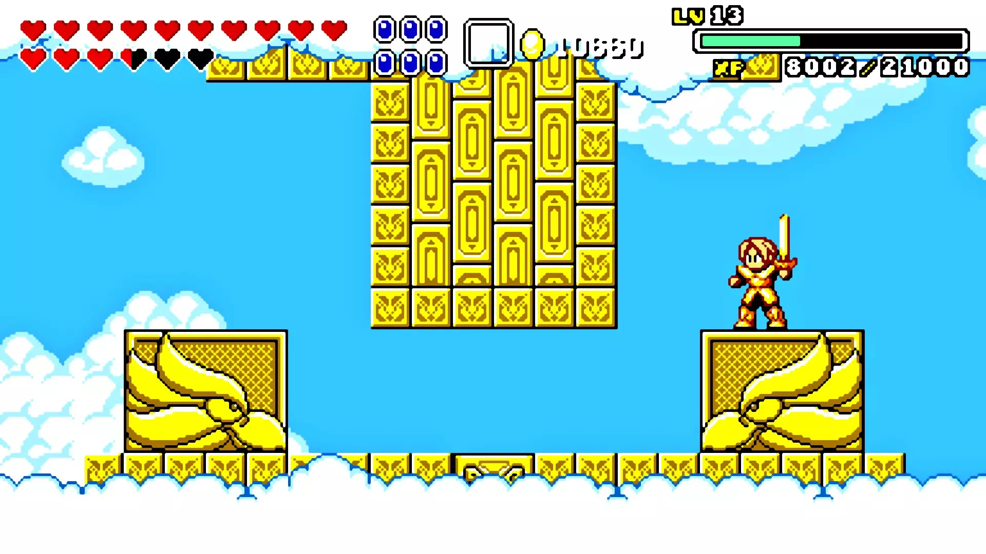前往前一扇门,走到水边后向左走,使用水之戒,接着使用火之戒。现在跳进洞里,装备铁剑,击败巨型史莱姆以获得【破碎的阿格洛斯之剑】。