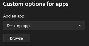 第二步:将游戏添加到应用列表中 要能够选择游戏,首先需要将其添加到列表中。 为此,请点击【浏览】,确保其上方已选择【桌面应用】。