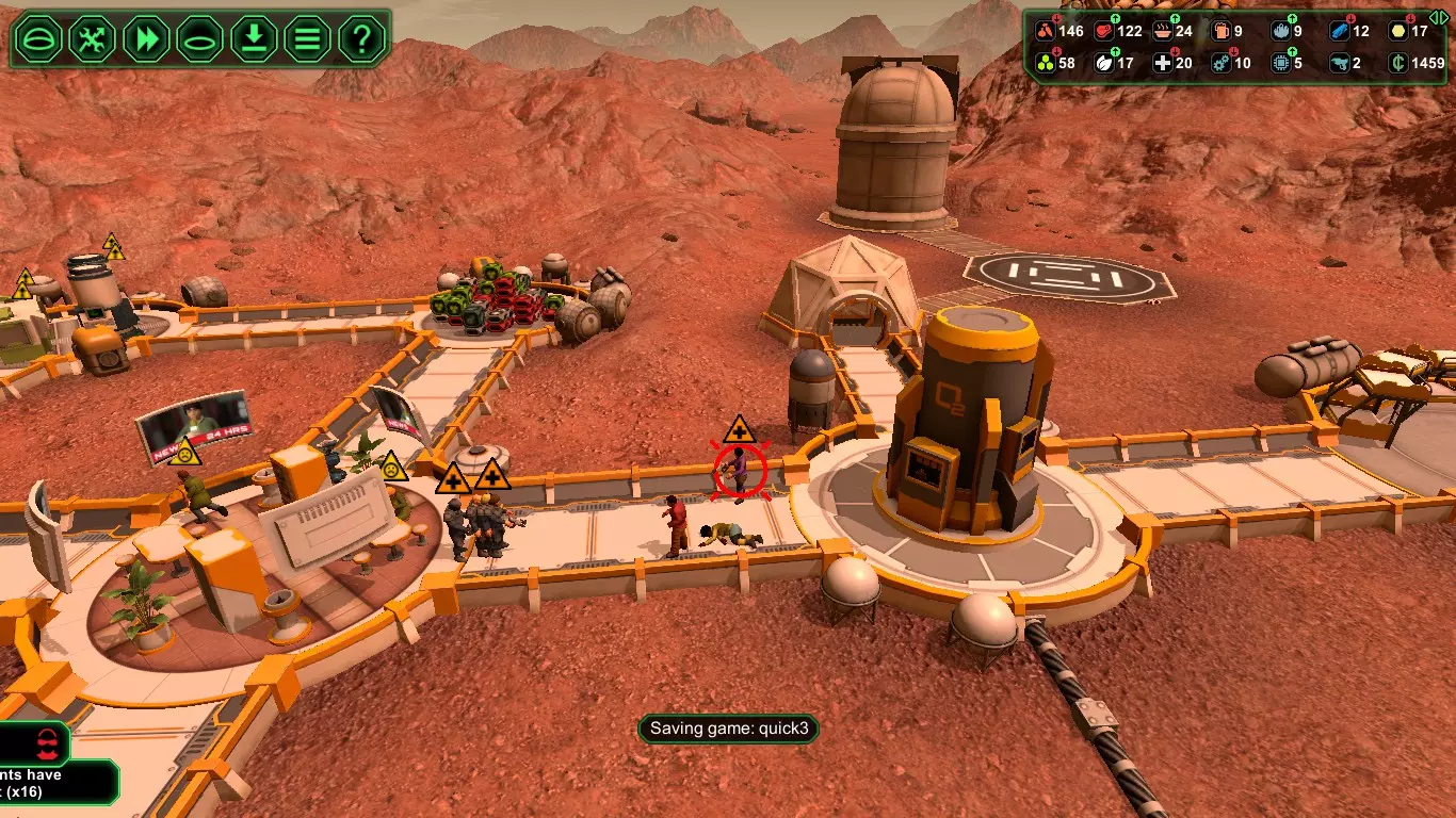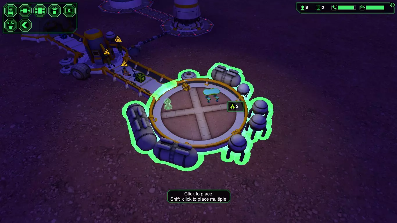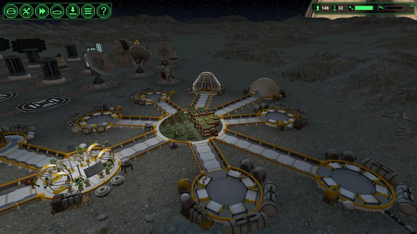 应对“隧道”类型建筑以及实验室/控制中心类型建筑 1. 寻找靠近山坡的开阔区域,然后开始建造氧气生成器 2. 建造大型建筑,例如生物穹顶/存储仓 3. 在大型建筑周围“分散”建造小屋/实验室/控制中心 4 .若要继续扩建,请为第二个氧气发生器预留空间。 供参考:五星殖民地【心情愉悦,财源广进】 除了更大的飞船【星际港口】外,还会带来两样东西——【入侵者】和【访客(又称金主)】。 无需再在贸易劳工上浪费时间和人力,进军服务业吧。 现在你可以经营一家五星太空酒店,配备所有所需设施。 只需确保你有大量多余的食物、啤酒、医疗包、宿舍和多穹顶建筑。 想要更多金主? 试试【行动:三个无线电天线】来拦截那些遇险的金主。“入侵者警报” 为控制入侵者造成的破坏,可尝试按以下顺序建造设施: “着陆平台”→“气闸室”→“储物间”→“氧气发生器” 为防止入侵者接触任何手无寸铁的平民,大多数入侵者会在抵达人口密集区域前被拦截并消灭。