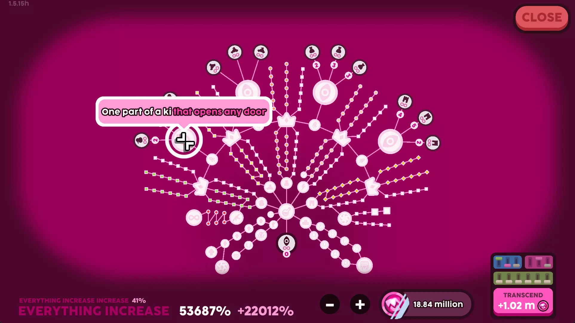 现在这部分我无法确认,但这是基于代码的,因为我不记得了。这只在你当前游戏进程的第一个Ki上有效,后续的Ki不行。一旦你点击第一个Ki并重新校准后,关闭游戏,不要进行其他操作。确保天空不是暗的。 The End of Ki - 1.4 月亮:在超越升级菜单中解锁4个Ki。 之后,你应该能在背景中看到一枚火箭和月亮。点击它。