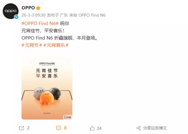 从目前的预热节奏来看,OPPO显然是打算在折痕控制上彻底摊牌。爆料称, Find N6的折痕深度将挑战行业极限,实现视觉上近乎绝对的平整感。