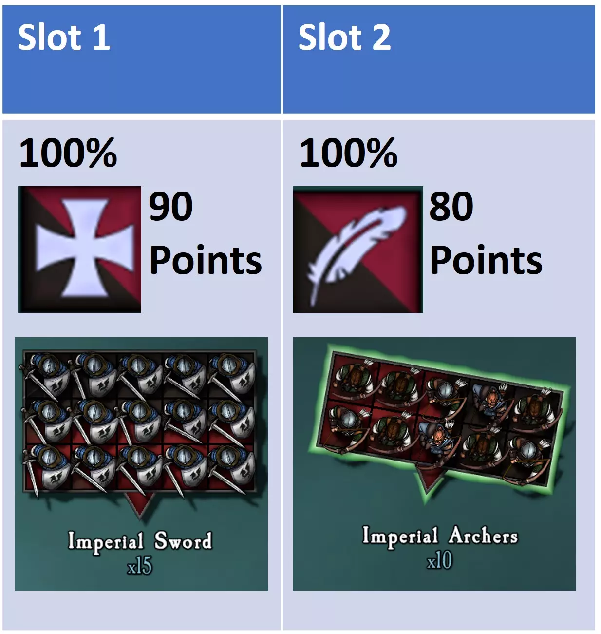 概述 常规战斗 第1-3回合 玩家的军队将拥有3-5个初始单位: 指挥官及其随从,外加两个额外单位,在某些情况下可能成对出现。 这些初始军队在自定义战斗中通常相当于200至300点。 在挑战等级2或更高时,此阶段的常规战斗有2或3个单位,相当于170至204点。