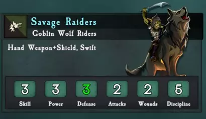技巧与窍门: 击溃对手: 以哥布林为核心的绿皮军队通常拥有大量模型和生命值,这使得游击战术的效果不如对抗其他军队时显著。它们纪律性低下,再加上中等的防御和伤害输出,使得在战斗中取胜并让一队哥布林溃败变得相对容易。 哥布林突袭者是早期阶段中唯一能力多样的对手。三个单位槽位中的两个可以配置为快速攻击单位或步兵单位——其中一个还可能是远程支援单位。这使得该军队可以是进攻型、防御型或全能型。部署时应考虑到所有可能的配置。 玩家通常拥有的单位数量不会比AI多,这会增加包抄和风筝这支军队的难度。合理匹配对手: 哥布林弓箭手的防御力为2,而其他所有哥布林单位因持有盾牌,防御力为3。 当对抗力量值为4的对手时,这一差异并无影响,但在受到力量值为3或5的攻击时则至关重要。 | 力量值 | 技能3攻击对防御2造成12点伤害所需攻击次数 | 技能3攻击对防御3造成12点伤害所需攻击次数 | | --- | --- | --- | | 技能3力量3 | 36 | 48(比防御2状态坚韧33%) | | 技能3力量4 | 36 | 36 | | 技能3力量5 | 29 | 36(比防御2状态坚韧24%) |