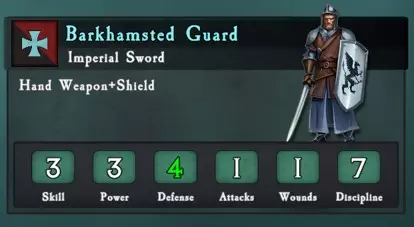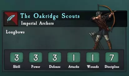 移动力 总生命值 远程伤害 部队损失1人时的逃跑概率 从后方攻击时使部队100%逃跑所需的伤害值 平均消灭部队所需攻击次数 8 15x 防御4 - 纪律7+3排-1=17% 7 60次技能3威力4的攻击 冲锋 持续作战 对典型攻击者的防御 10次技能3威力4→对技能3防御4平均造成2.5伤害 10次技能3威力3→对技能3防御4造成1.7伤害 12次技能3威力4的攻击对该部队平均造成3.0伤害
