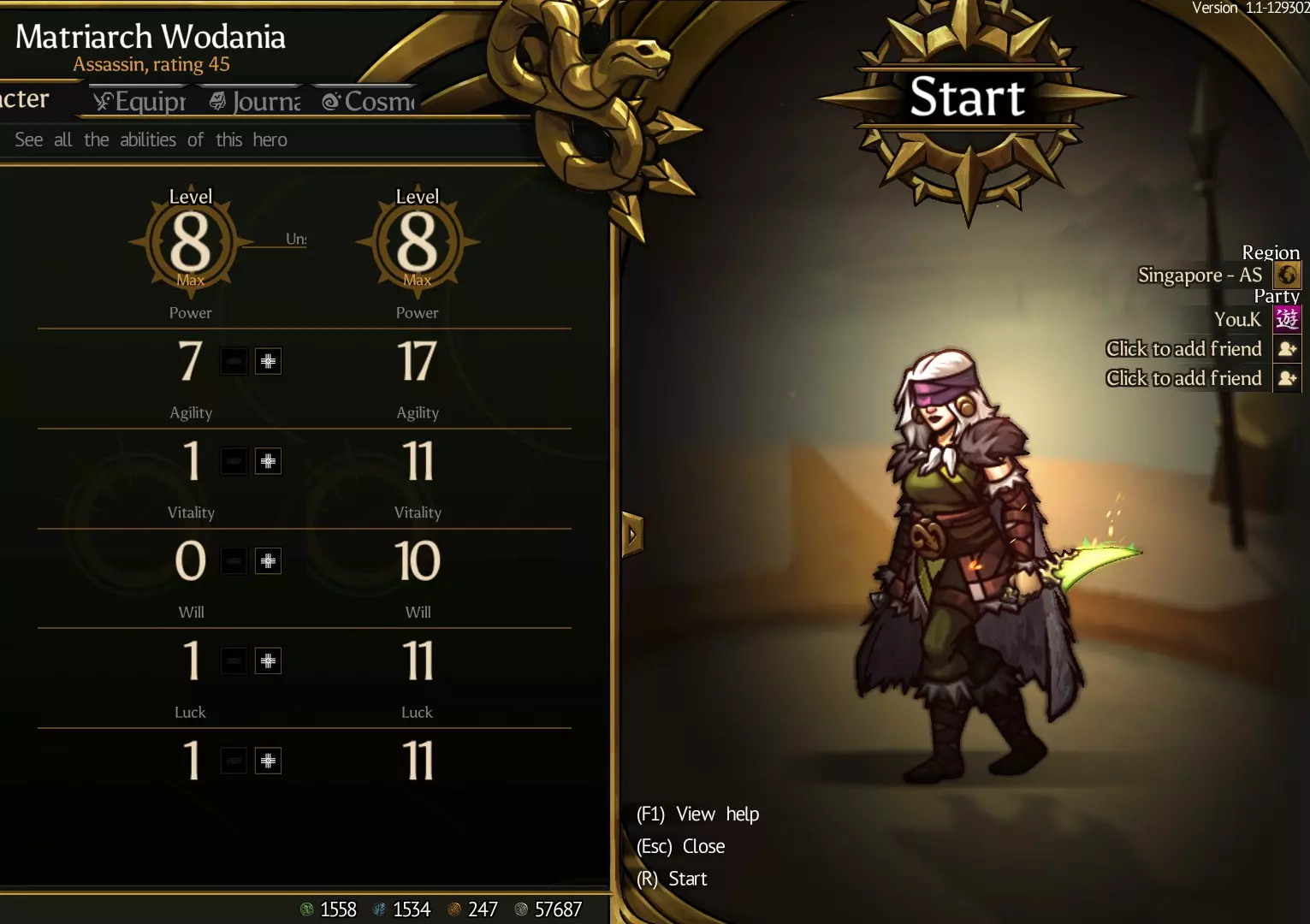 【缪恩的半月】 技能伤害+100% 冷却时间缩短+15% 金币获取量+30% 回旋镖:投掷的同时开始冷却 伤害500%,冷却时间缩短30%,效果范围变小 【骷髅切割者】 暴击率+30% 冷却时间缩短+15% 暴击伤害+200% 技能伤害+100% 切换要害攻击与飞刀投掷 【艾瑟莱的谎言】 生命值+600 暴击伤害+200%暴击率+24% 暴击时赋予3秒速度降低 杜隆的恩惠 ──────────────────────────── 普通攻击赋予5秒速度降低 复仇伤害+50% 暴击率+24% 技能伤害+60% 死亡后仅自动复活1次 这是强化了高火力,让鼠标的固有技能【手里剑】持续连发的build。由于暴击率98%,所以几乎必定暴击。虽说可以连发,但发射间隔并没有那么快,因此在被敌人四面包围等情况下,可能会出现处理不过来的情况。 刺客:沃达尼亚