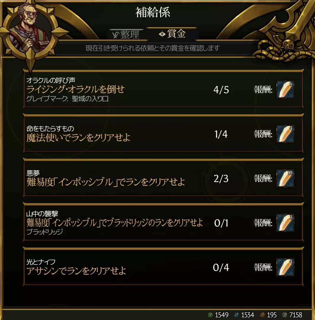 【悬赏内容】 悬赏的内容包括“击败n只○○”“使用魔法师完成一局游戏”“完成○○(地名)的任务”等简单类型,也会出现“以不可能难度完成一局游戏”“以不可能难度完成○○的一局游戏”等指定最高难度的类型。出现最高难度本身没有问题,但存在一个致命缺陷,即即使达成难度很高,也没有重置功能。虽然可以同时进行多个悬赏任务,但如果一直搁置不可能难度的任务,最终所有任务栏都会被不可能难度的目标占满。最坏的情况下,可能会陷入在攻略“不可能”难度前无法获得艾瑟莱水晶的状况。 幸运的是,仅通过基地发展就能获得近100个艾瑟莱水晶,建议以此为基础制作攻略“不可能”难度用的道具。 需要前提说明的是,游戏并非为单人模式设计,困难及以上难度几乎会被一击秒杀,NPC的复活率也会大幅下降,任务失败会变得相当频繁。大多数情况下会以一种莫名其妙、毫无道理的方式结束,甚至都不知道自己是怎么死的。NPC太蠢了,所以就算失败了,在精神上把责任全推给NPC也没问题。毕竟这款游戏在发售后的一段时间里,由于没有实装BOT,根本无法进行单人游玩,这么一想也就释然了。 ——针对不可能难度的build—— 这里分享一个我实际尝试后,发现即使在不可能难度下也能通关的build。 只要增加尝试次数,总有一天一定能通关,所以不要放弃。特别是陷阱的配置是随机的,有时会有2道光束陷阱,有时则一道都没有,因此陷阱房间的战斗难度会完全不同。当你想重试同一关卡时,会出现游戏结束后返回基地,且关卡难度发生变化,导致无法挑战同一关卡同一难度的情况。由于队友全部倒下后到切换至游戏结束画面之间有一段时间,在此期间打开菜单并选择【返回基地】,可以防止难度重新随机。不过,队友的阵容会发生变化,并且在该次冒险中获得的金币和道具也会消失。 战士:残兵