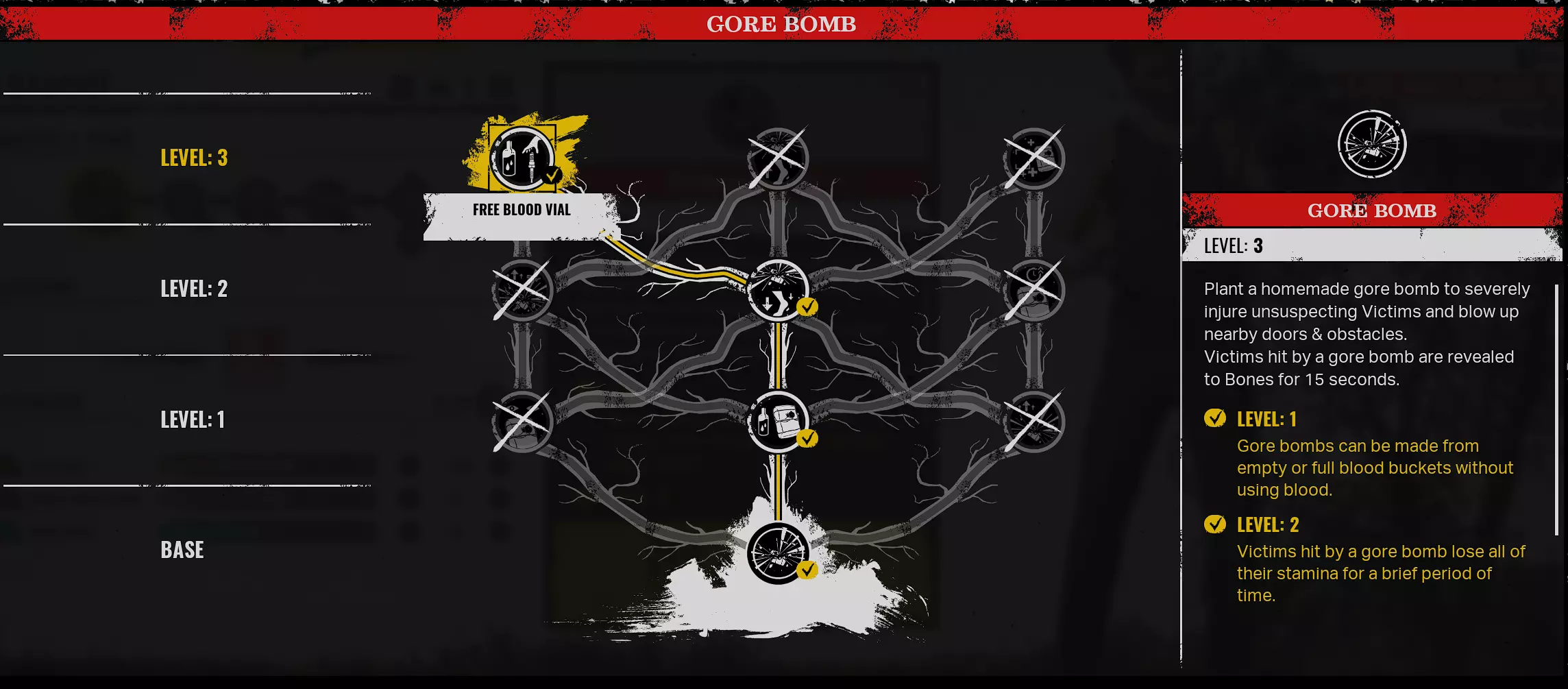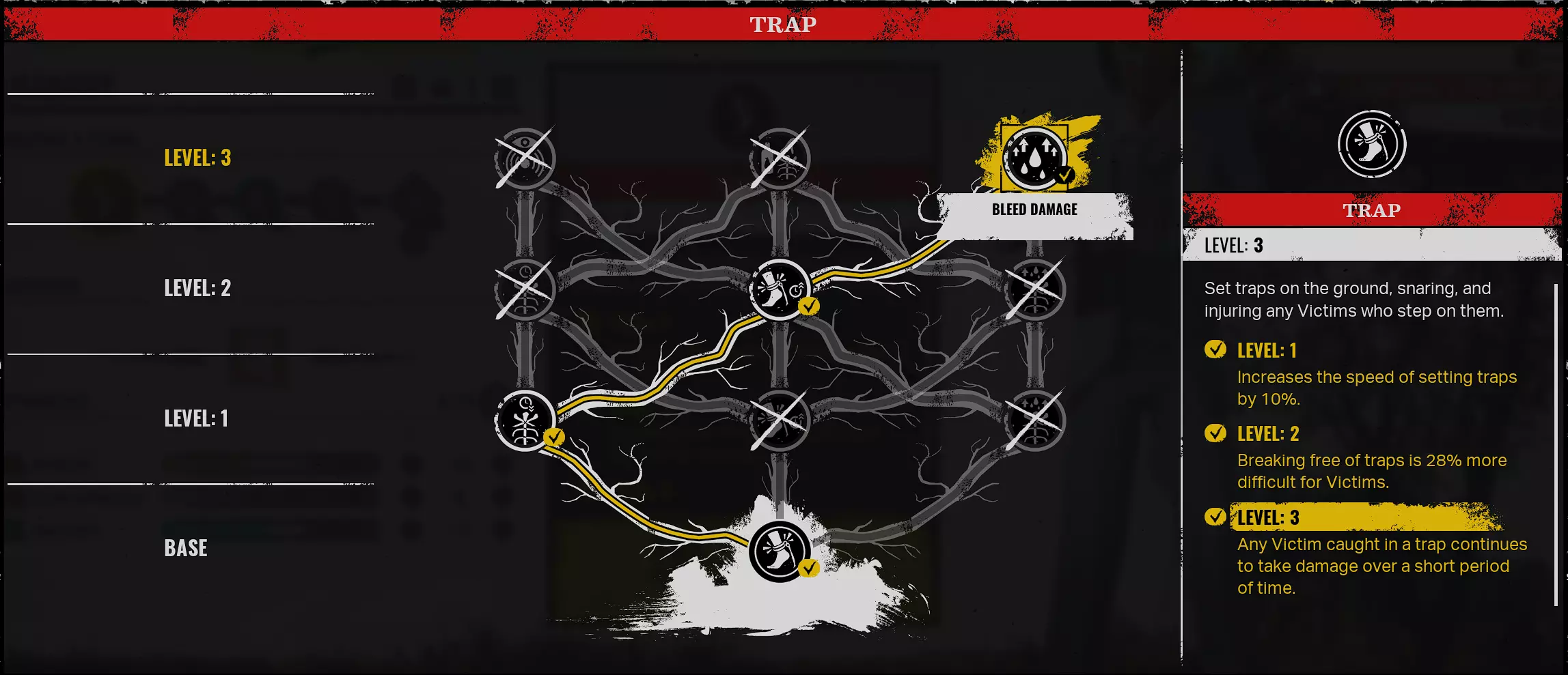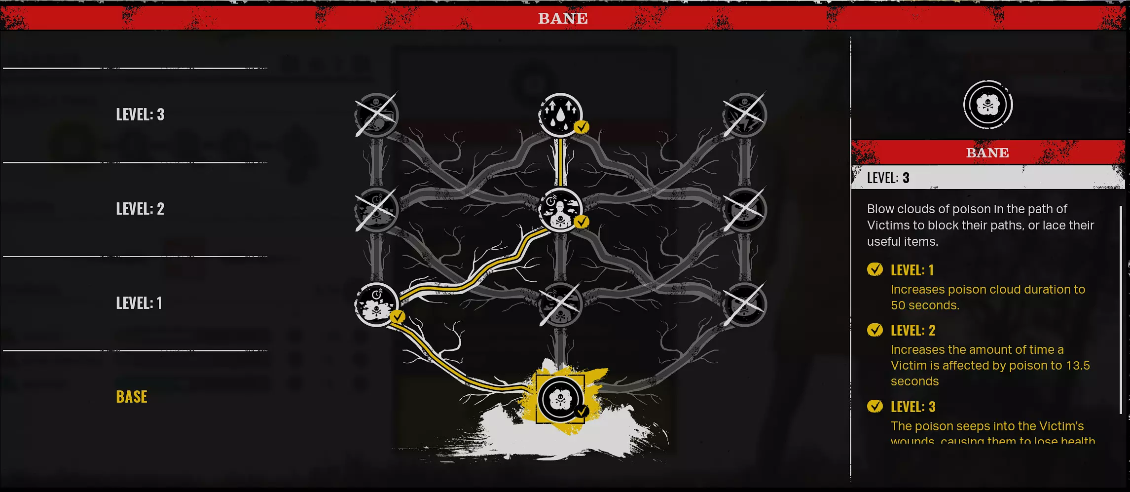 橡胶腿/滞留 - 橡胶腿会使中毒的受害者移动速度降低20%。滞留效果会扩大你的毒云范围,并使其能够穿透墙壁和地板。你需要在技能树中向左加点来解锁这些技能。