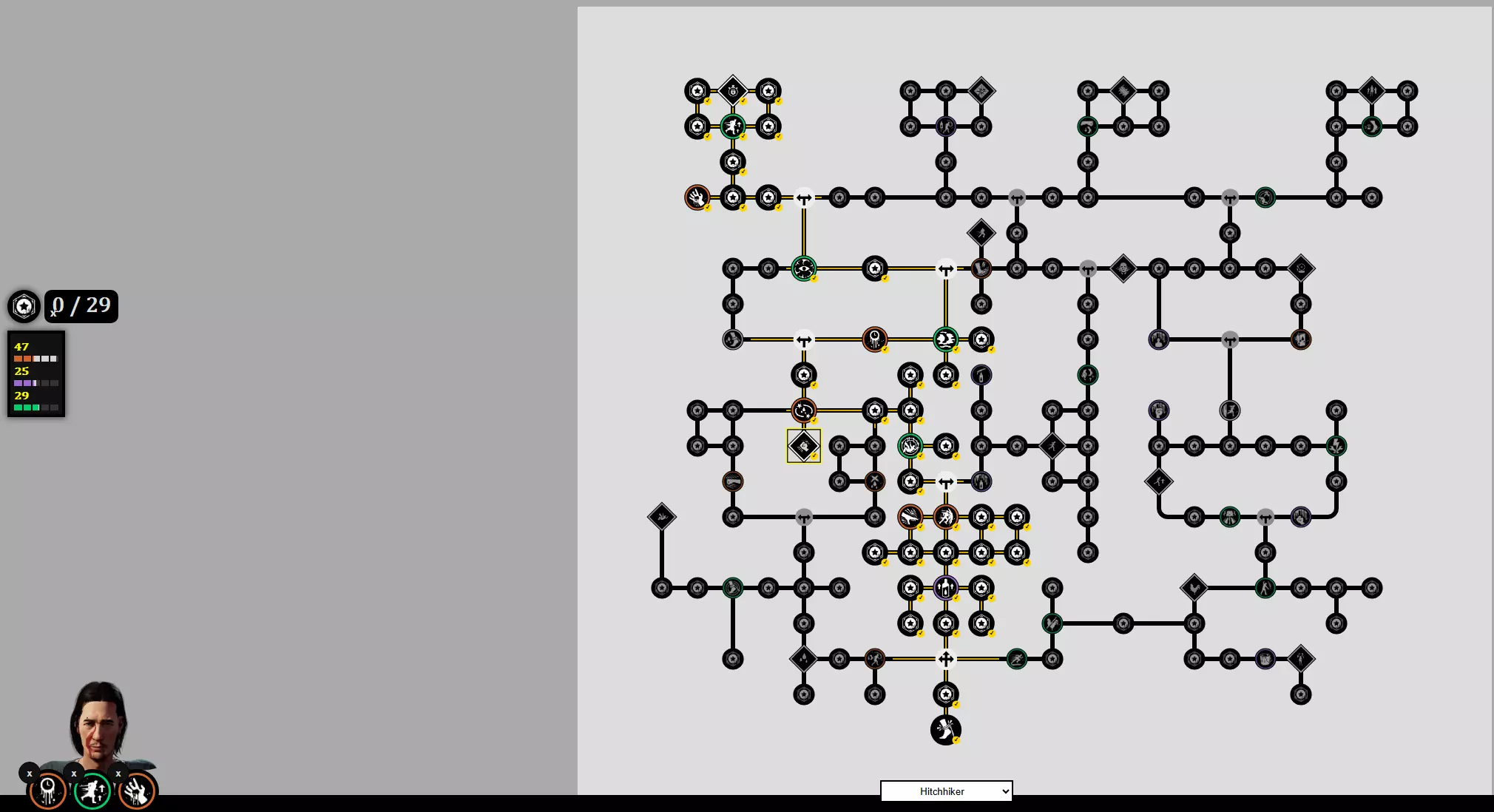晚餐铃/万能供血者 - 晚餐铃与搭车客/巧手搭配效果不错,因为他们的陷阱也能从中受益。万能供血者很实用,但吸血并非你的主要 focus。两者都不算理想,但对她来说是最佳选择。 属性点 + 爷爷技能 39 残暴 - 你可以对40坚韧值的受害者造成6次命中。 33 残暴 - 默认值。如果你选择万能供血者,可使用35点血猎。这样,3桶血就能达到100+的血量。 30 耐力 - 剩余点数投入此处。结合南希的基础耐力,你会感受到效果。