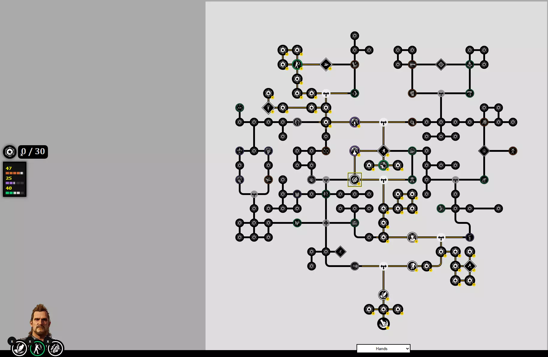 爷爷技能 - 蛮力/井井有条 - 与手部技能的协同效果不是最佳,但也算聊胜于无。 技能树